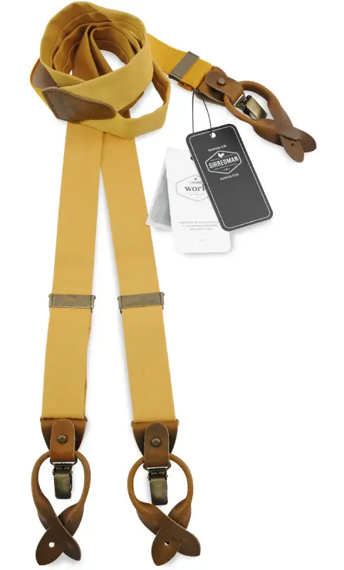 Den varma ockragula nyansen gör dessa hängslen till ett mångsidigt tillbehör som är enkelt att matcha. Bär dem med en mörk kostym för en sofistikerad look eller kombinera med vit skjorta och jeans för en ledig, men stilren känsla. Sir Redman erbjuder dessutom ett brett sortiment i olika färger och designer – så du hittar alltid ett par som matchar din stil perfekt.