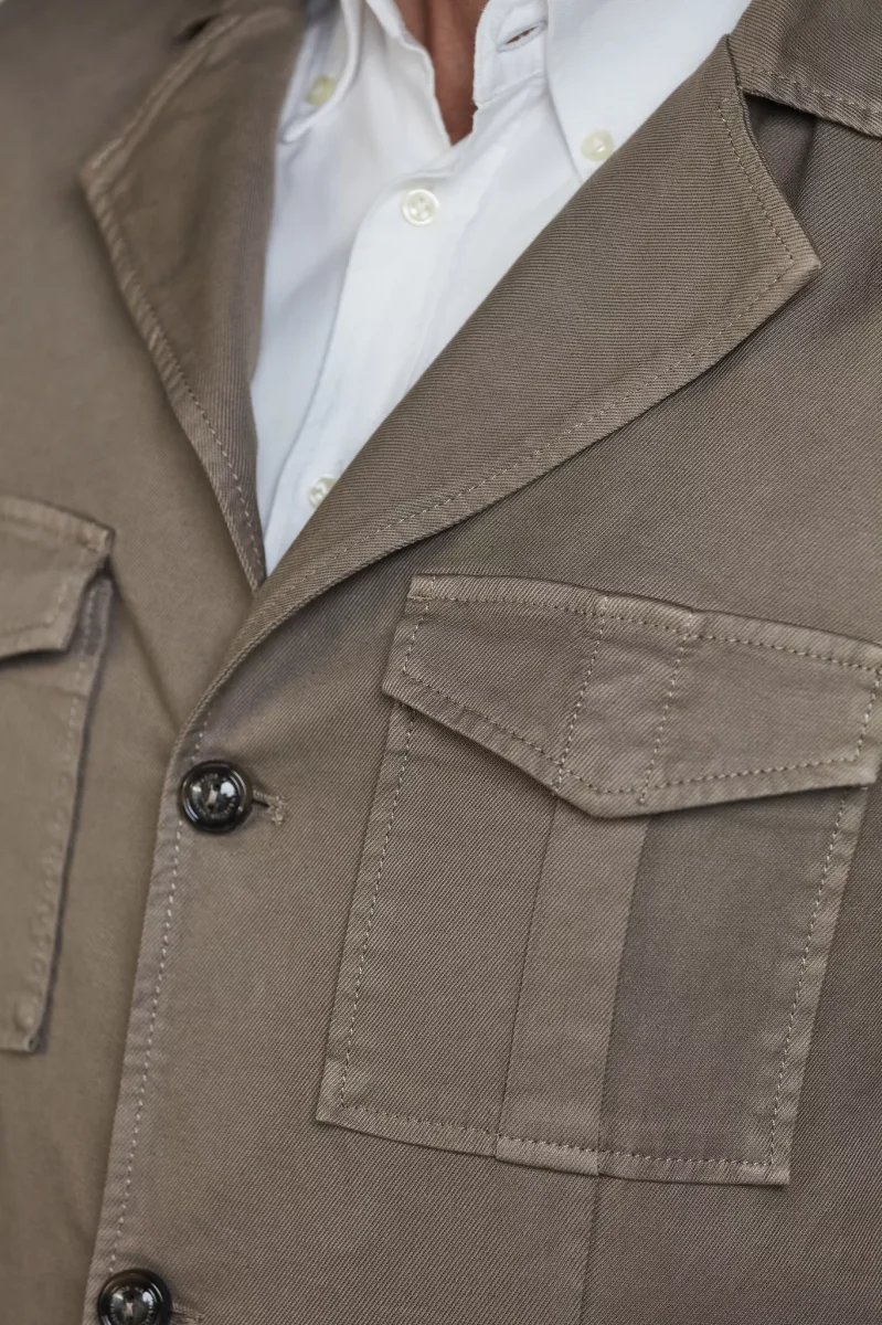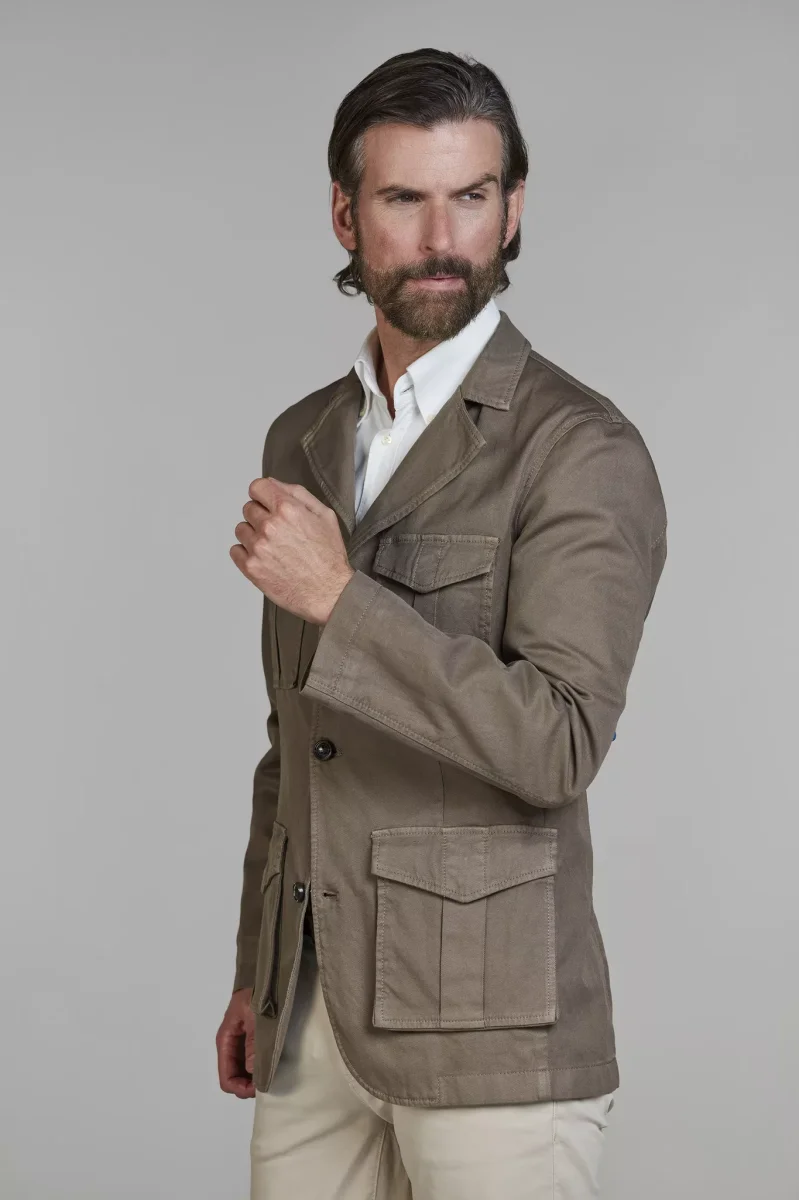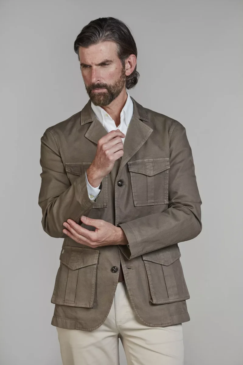 Denna eleganta safarijacka i en lyxig blandning av bomull och linne är den perfekta kombinationen av stil och funktion. Med sina 4 praktiska fickor och klassiska design ger jackan både ett tidlöst och sofistikerat uttryck, idealisk för både stad och natur. Det lätta materialet gör den bekväm att bära under varmare dagar, samtidigt som den andas och ger ett stilrent intryck. En oumbärlig jacka för den modemedvetna mannen som uppskattar både stil och funktionalitet.