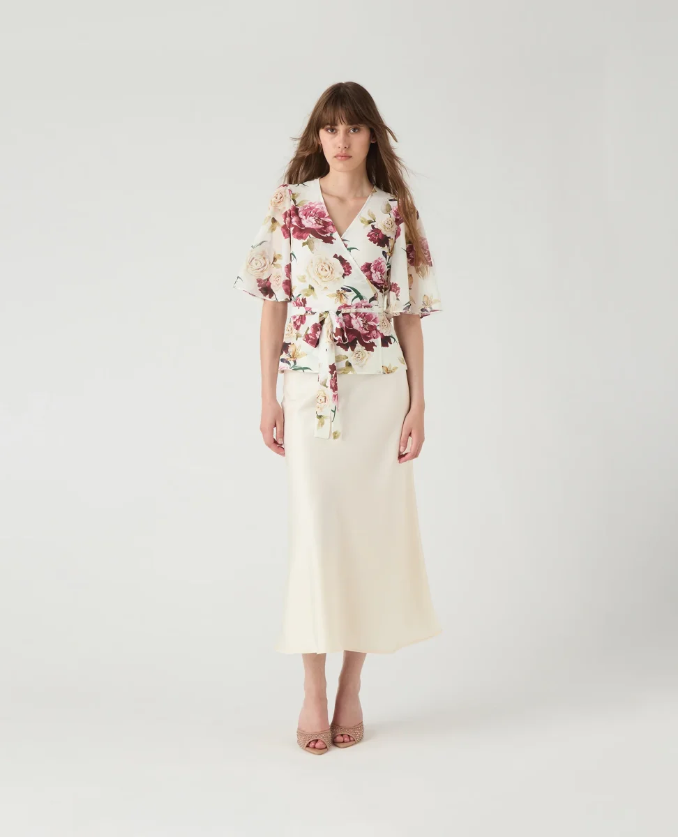 Harper blouse is an effortless wrap blouse with short flared sleeves, cut from floral printed fabrics. Perfect to style together with our silky cat skirt.