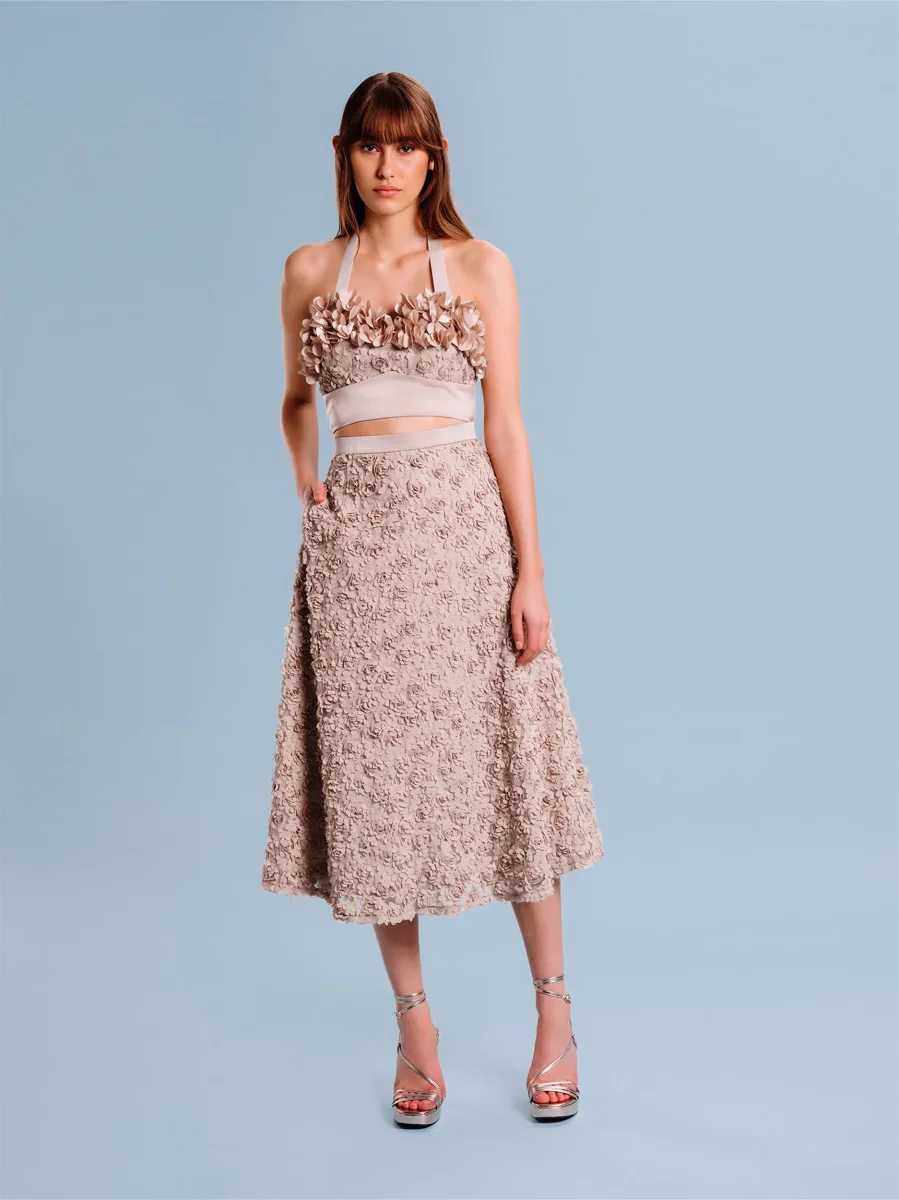 Splendour is an effortless flattering midi skirt made in a beautiful 3D floral fabric. Style together with matching Cutie top or Emile top for a show-stopping look!