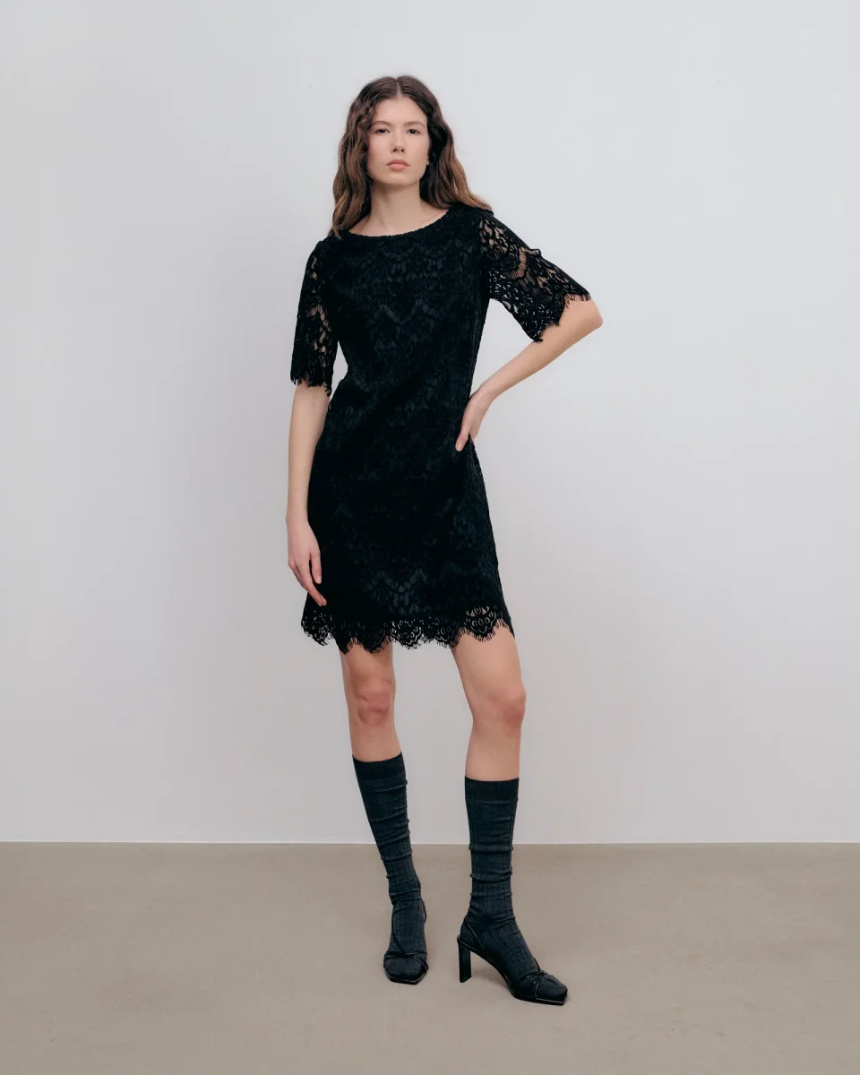 Graceful and effortlessly chic, Carlyle velvet lace dress offers a relaxed silhouette that drapes beautifully on the body. The lace adds depth and texture, while the soft lining ensures comfort and coverage. This piece transitions seamlessly from day to evening. Wear it as a standalone statement or layered over tailored trousers for a sophisticated edge.