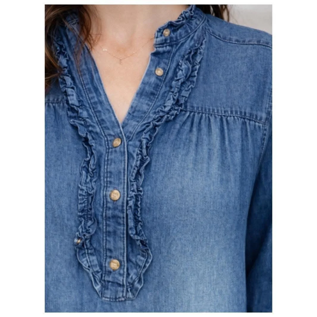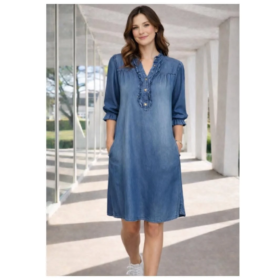 Jeansklänning med krås i tencell, från Chica London