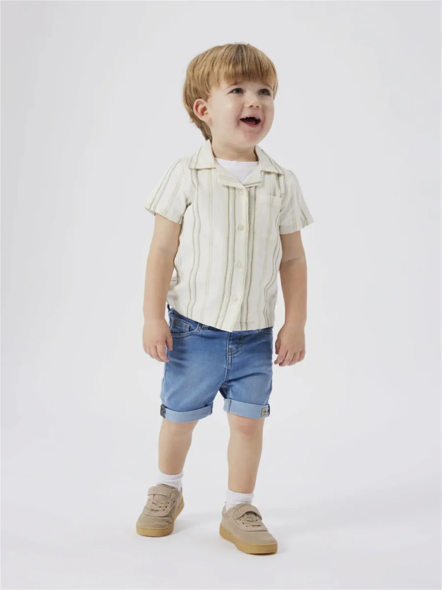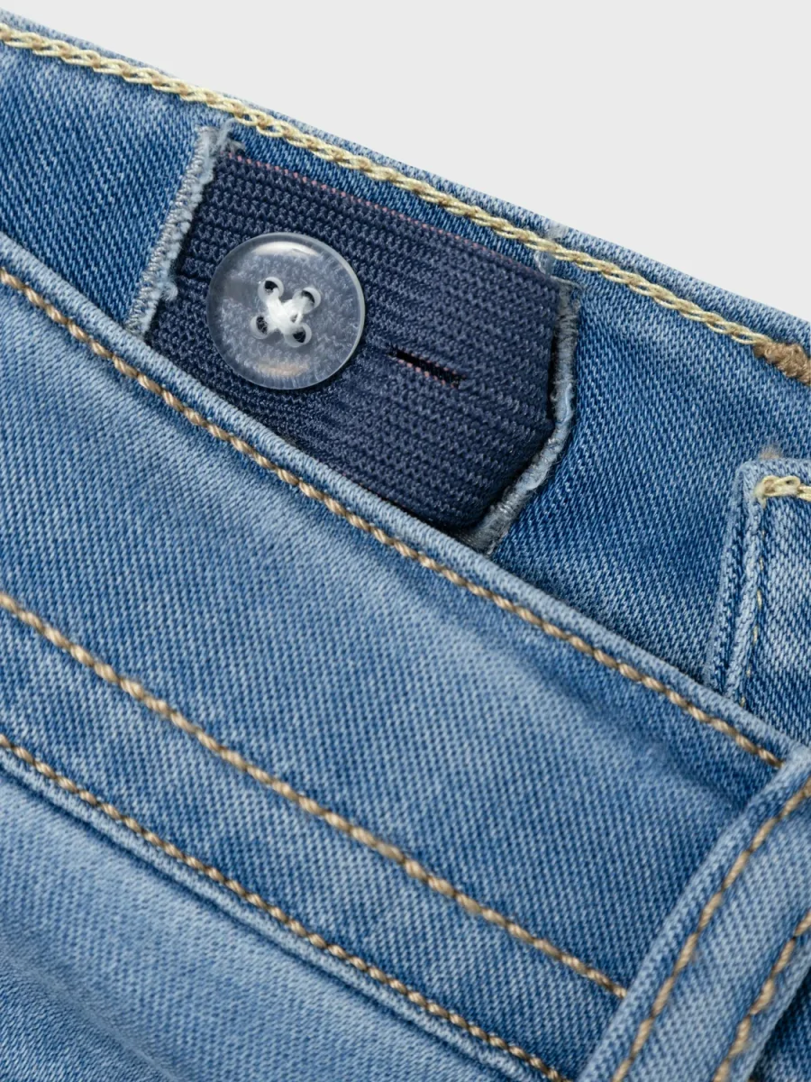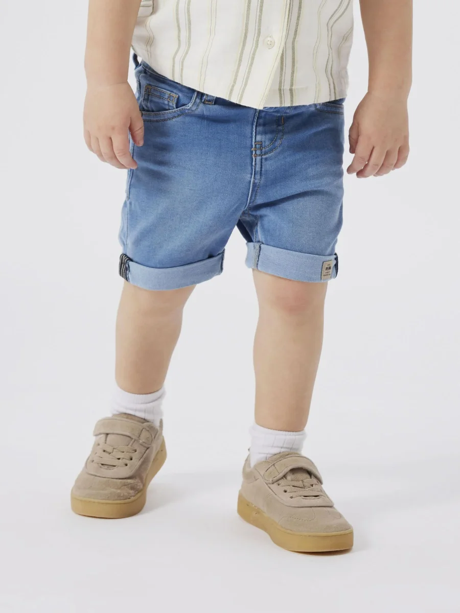 Superstretchiga jeansshorts med reglerbar resår i midjan.