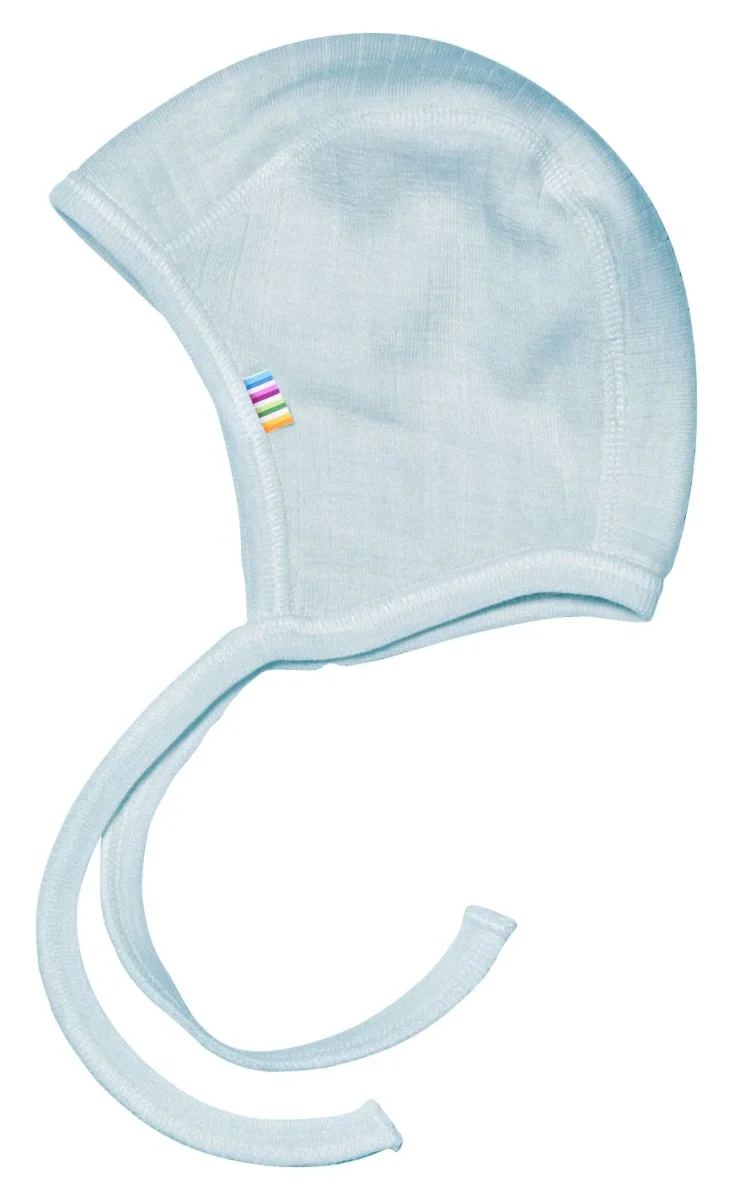 Den här mjuka mössan från Joha är perfekt för de allra minsta. Mössan är tunt stickad och har mjuka snören som man knyter under halsen för att undvika att mössan snurrar runt.