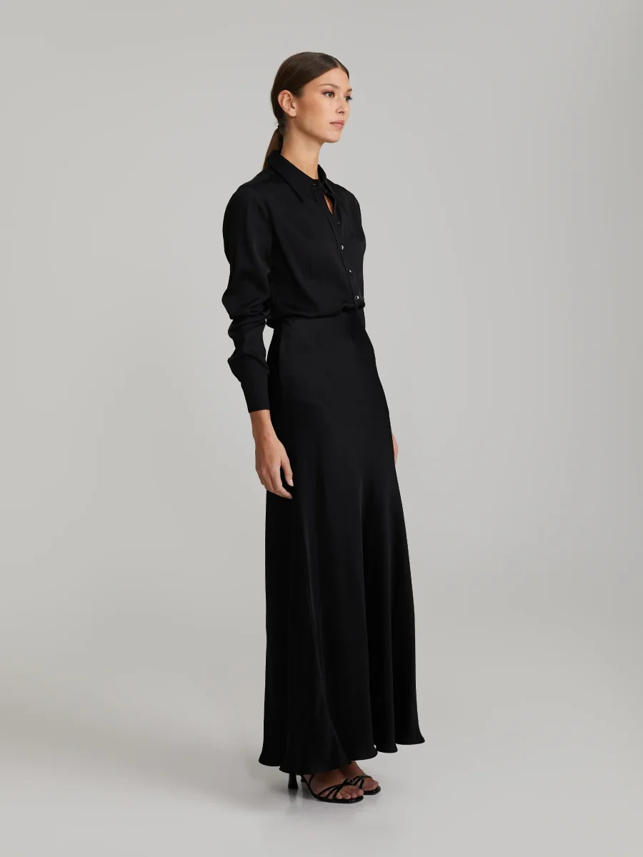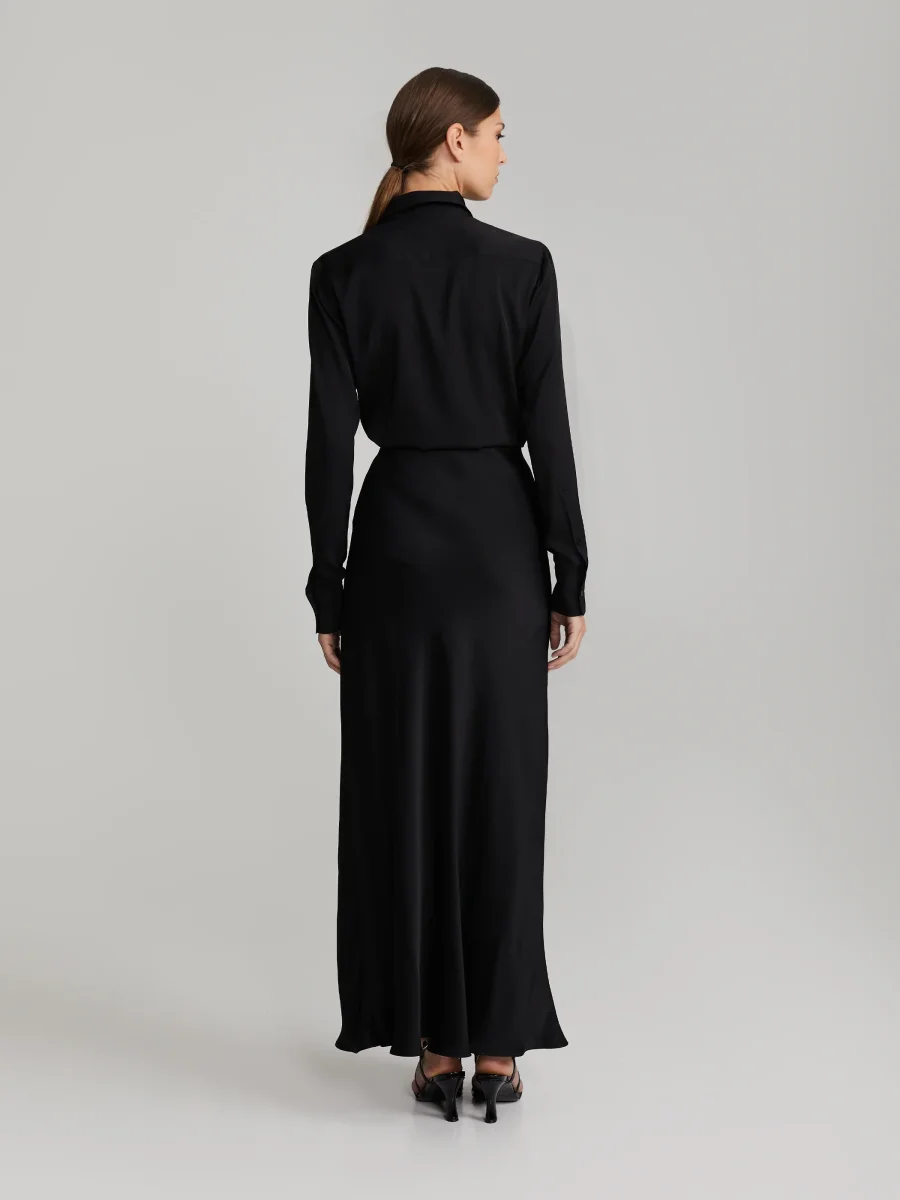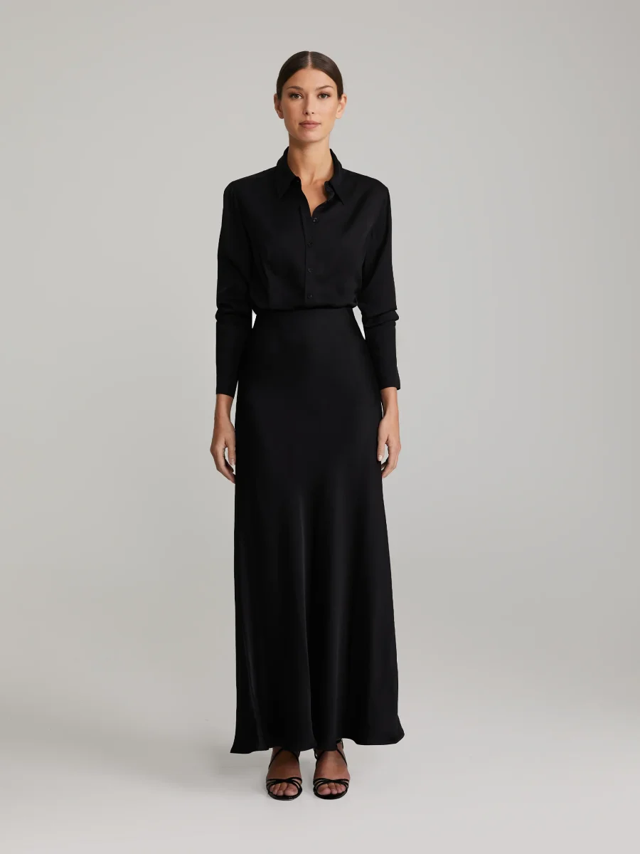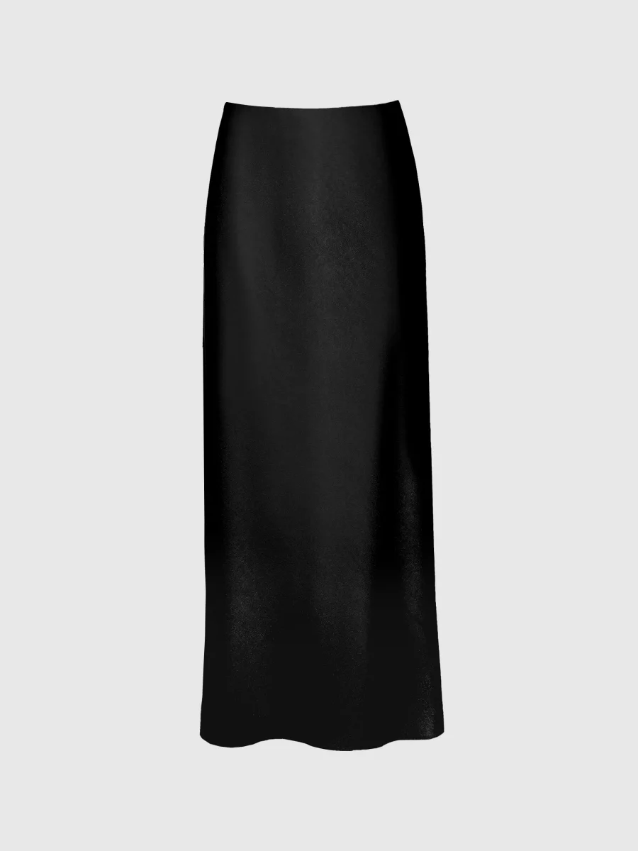 Hellång, ofodrad satinytad kjol med flytande siluett. Elastisk midja. Tillverkad i högkvalitativ italiensk tyg.