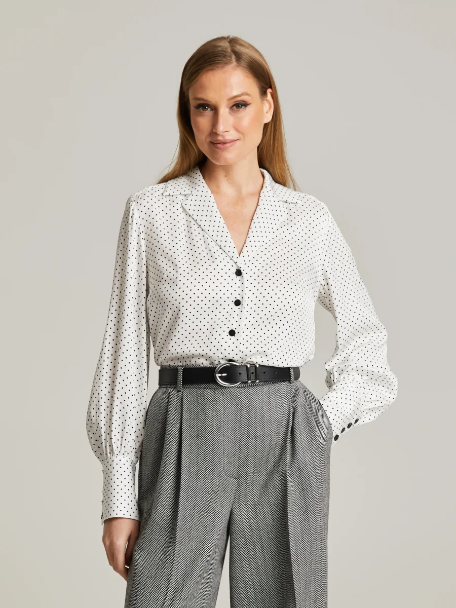 Skjorta med avslappnad passform. Skjortan har långa ärmar med breda manschetter och är tillverkad av italiensk viskossatin.