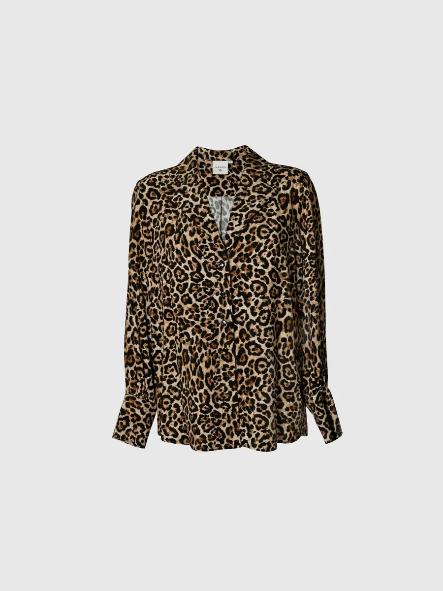 Blus med avslappnad passform. Skjortan har långa ärmar med breda manschetter.
