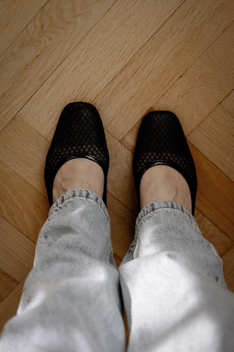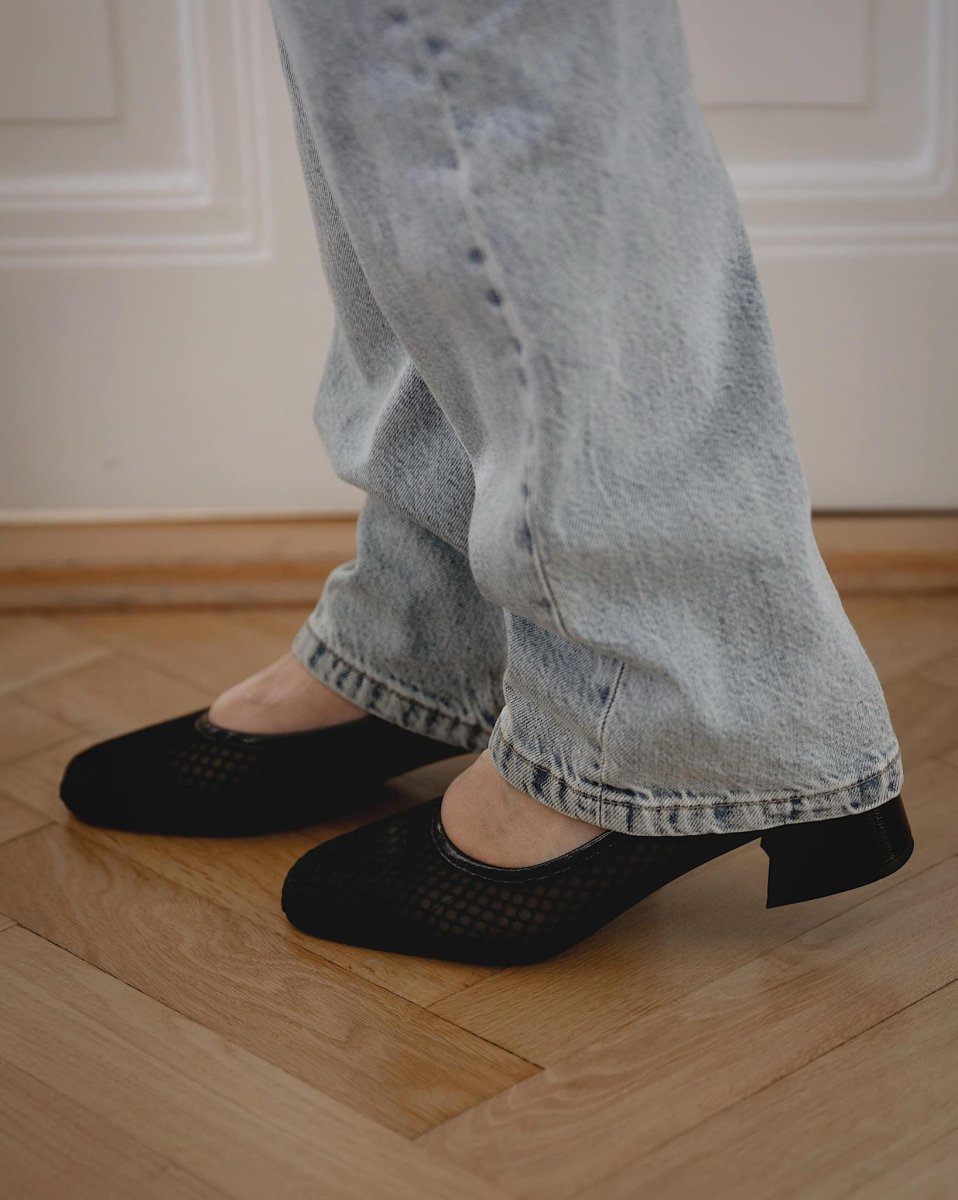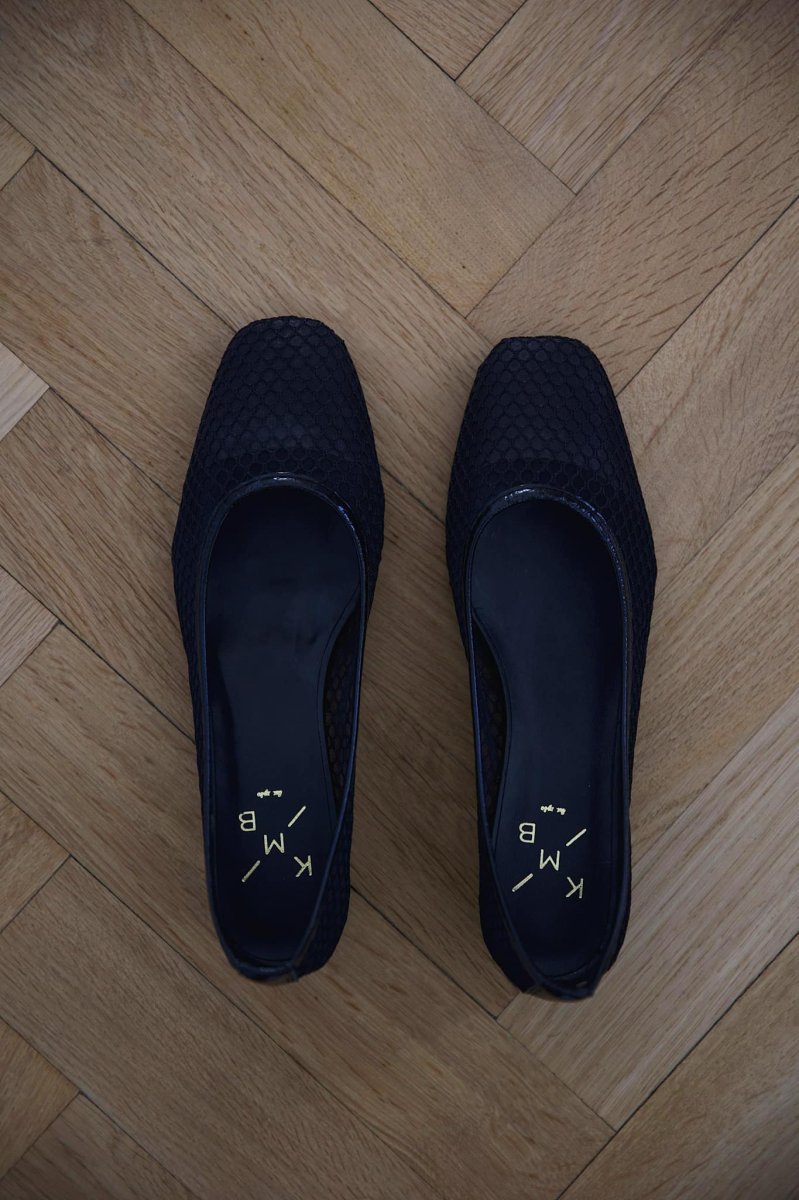 Skor i mesh med klack från spanska märket KMB. Utformade som en ballerina sko med tjock stabil klack för en hel dags användning. Säsongens favorit utan tvekan.