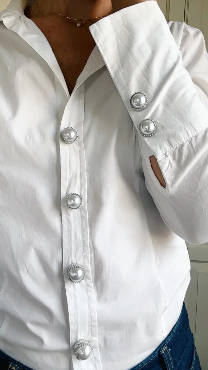 6 st knappsmycken med en stor pärla & silvrigt underrede.