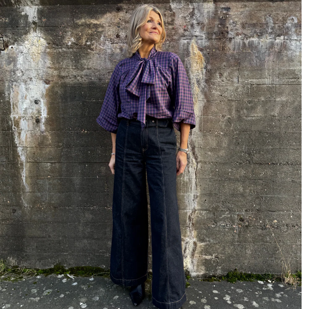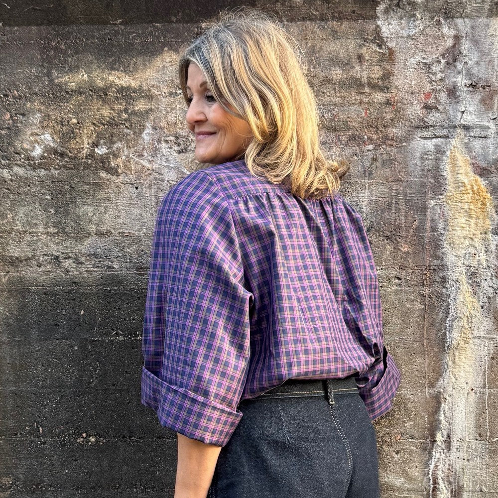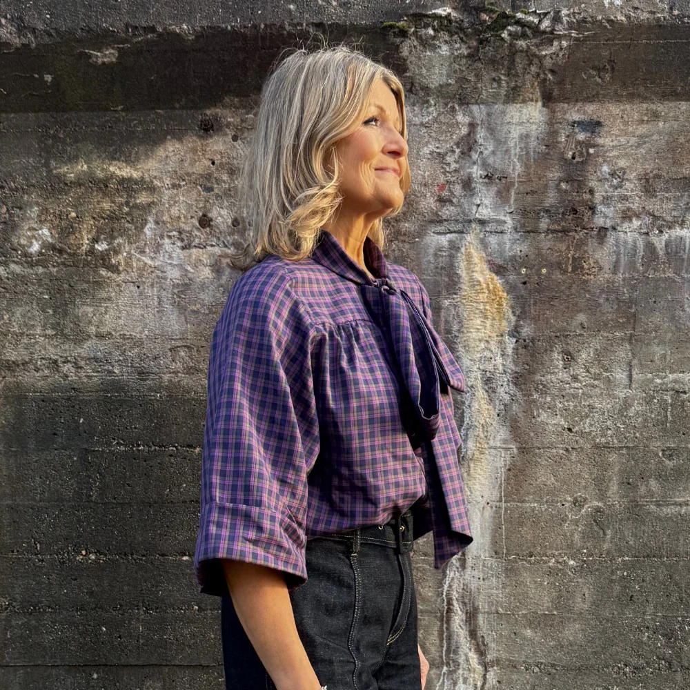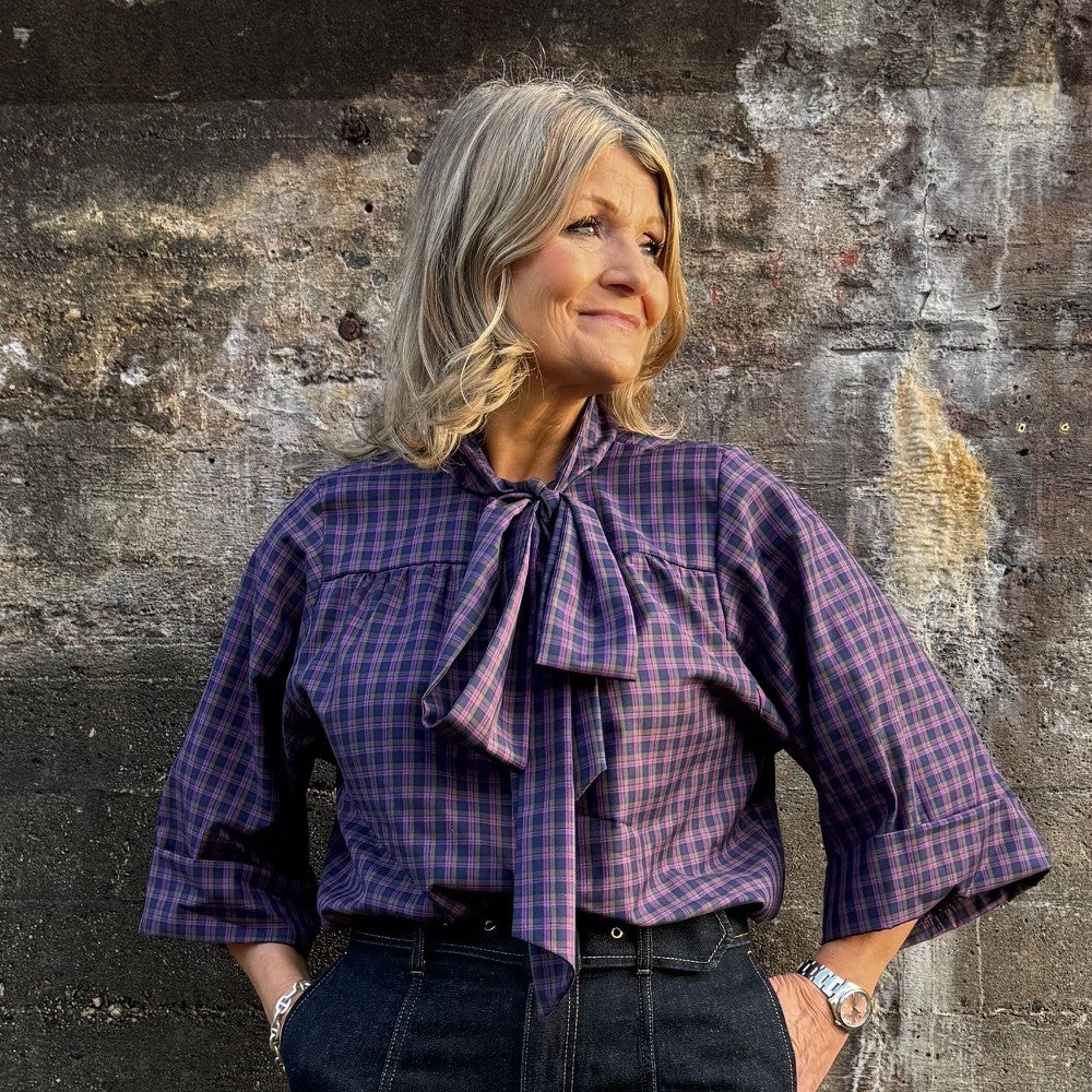 Knytblusen Birgitta är en härlig modell som passar till så många tillfällen. Klä upp med snyggare byxa eller kjol, skapa kontrast med jeans och boots/sneakers. Tyget, som är s.k leftover fabric är i en otrolig kvalitet från det svenska skjortföretaget Eton som gör herrskjortor. Jag tycker om känslan att skapa något feminint av det här tyget.