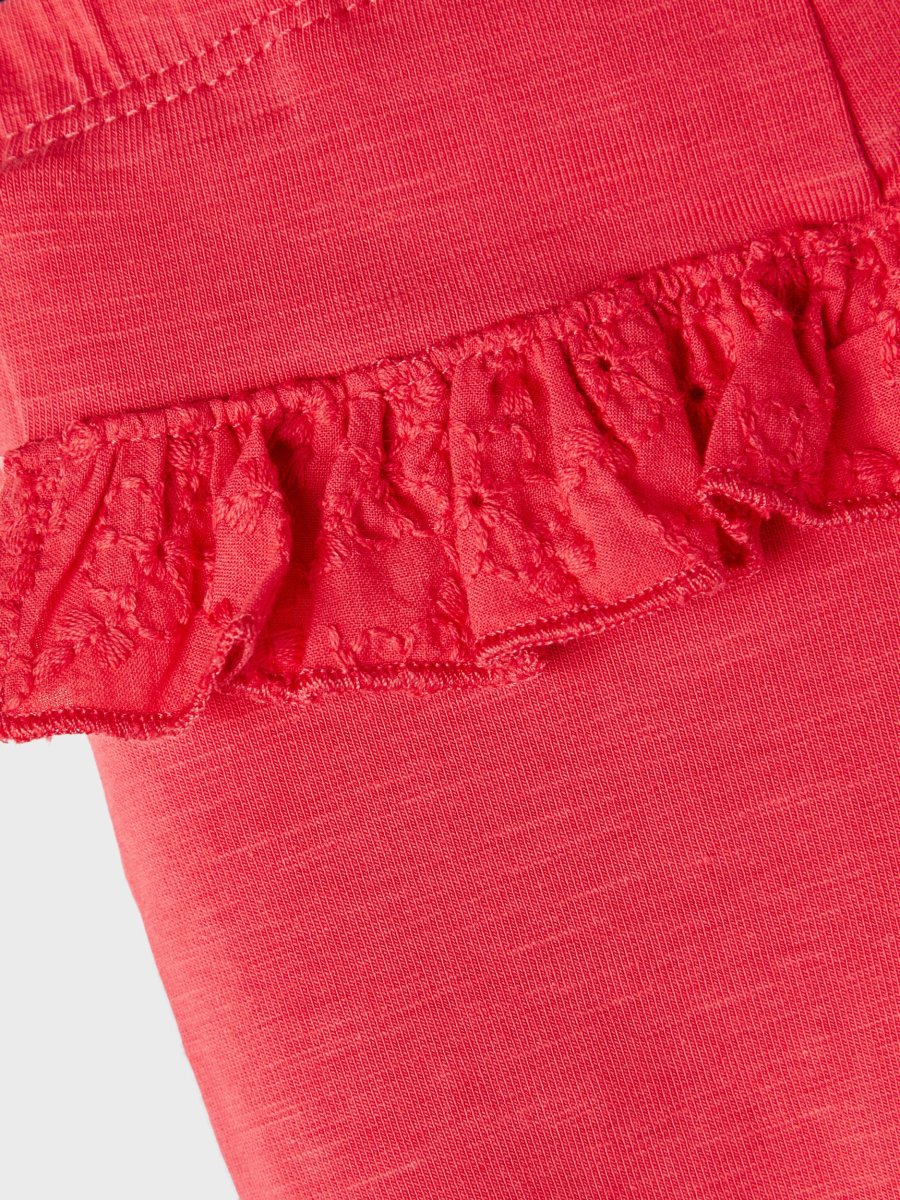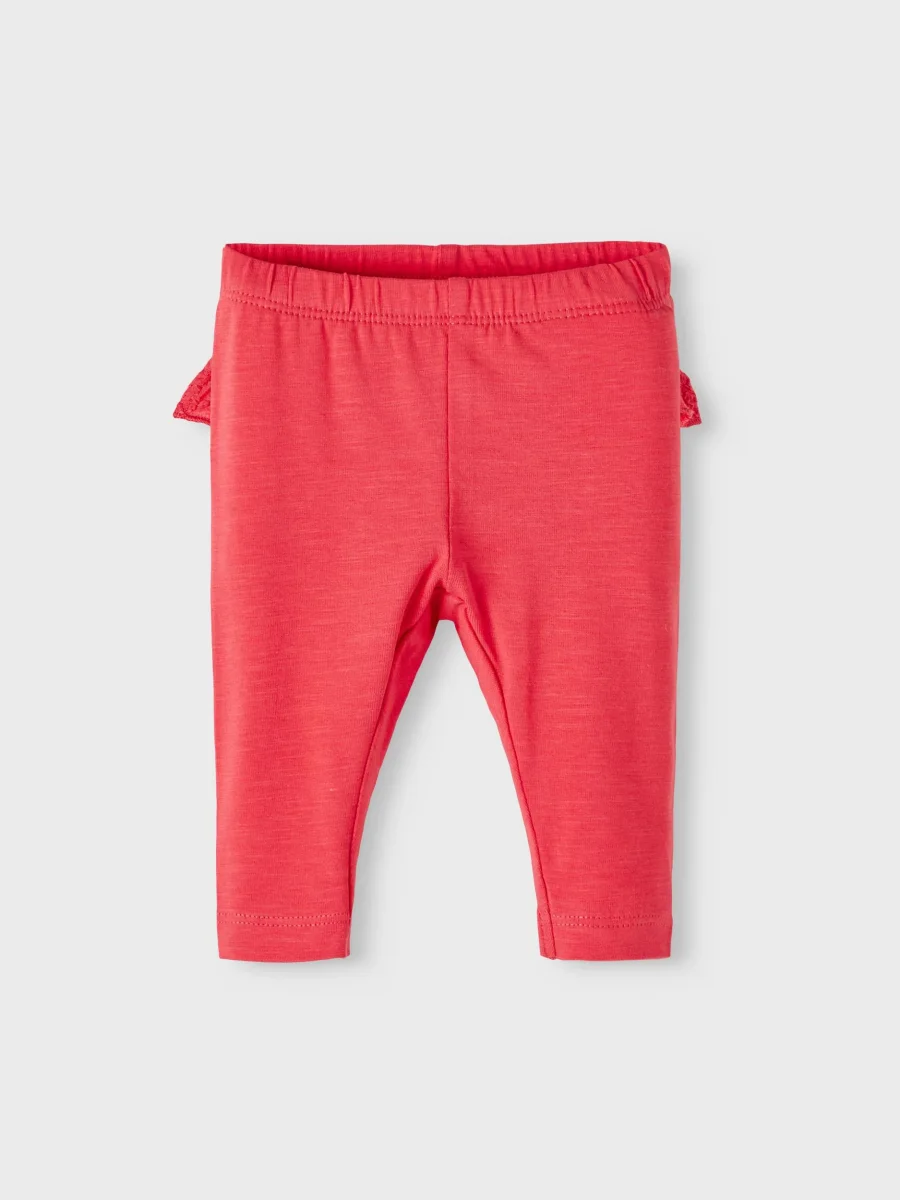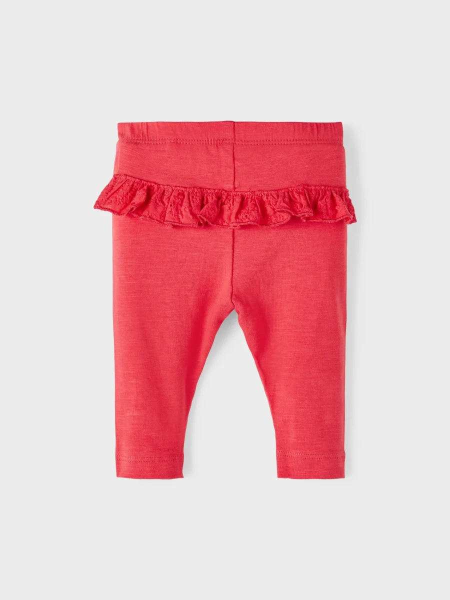Söt baby-byxa med volang på rumpan som är lite kortare än normallängd och slutar på vaden.