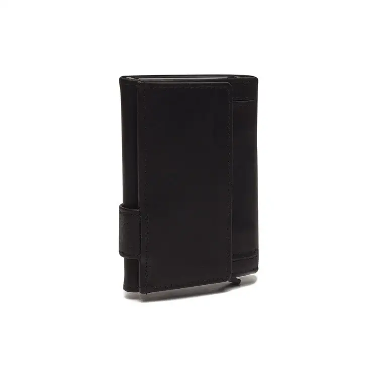 - Säker stängning: Pålitlig tryckknapp håller plånboken säkert stängd.