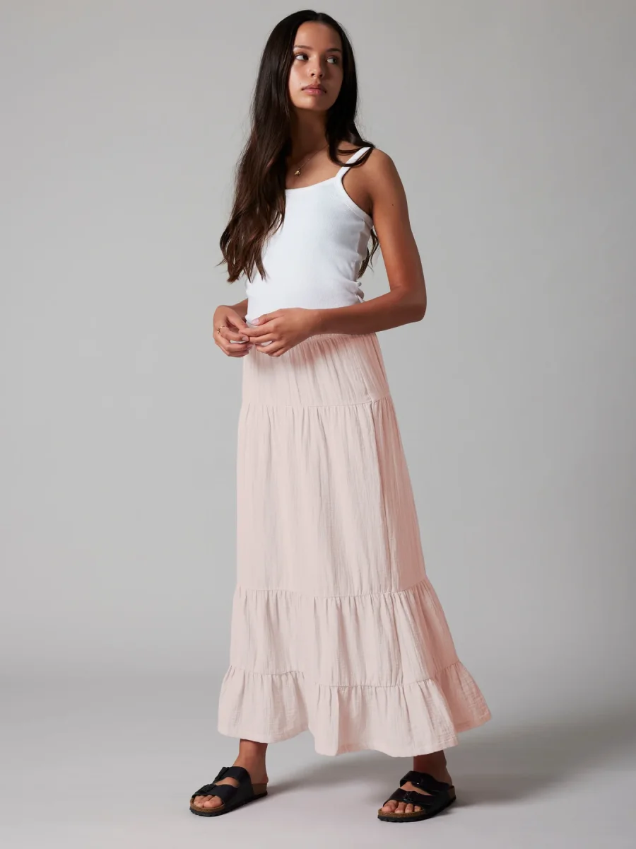 En trendig ljusrosa långkjol som ger en avslappnad men samtidigt snygg look. Den långa modellen ger ett fint flow när du rör dig och gör kjolen både bekväm och cool att bära i vardagen.