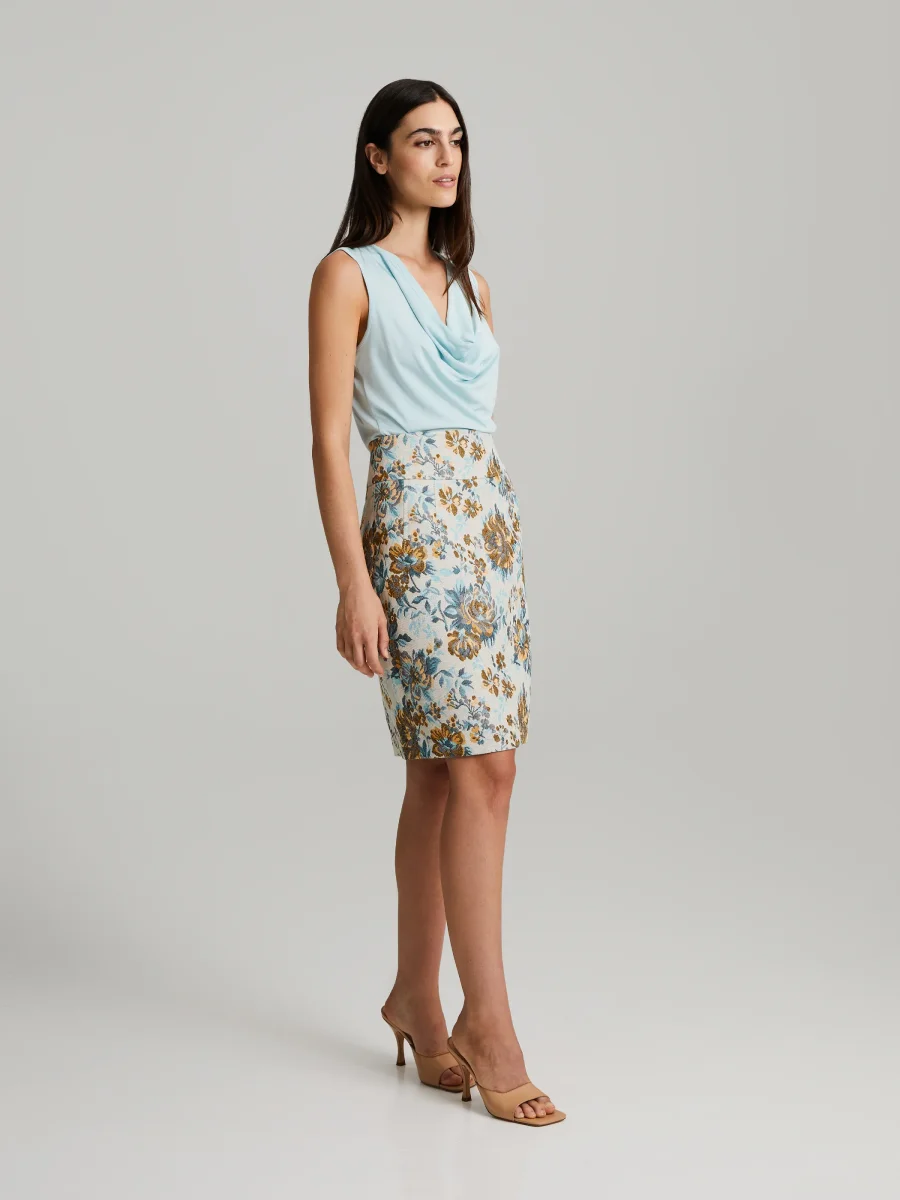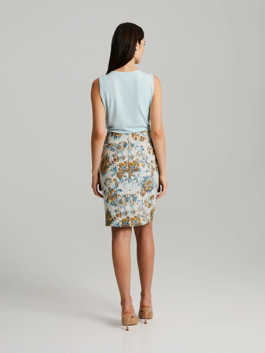Ros mönster jacquardkjol, fodrad med dolda dragkedja.
