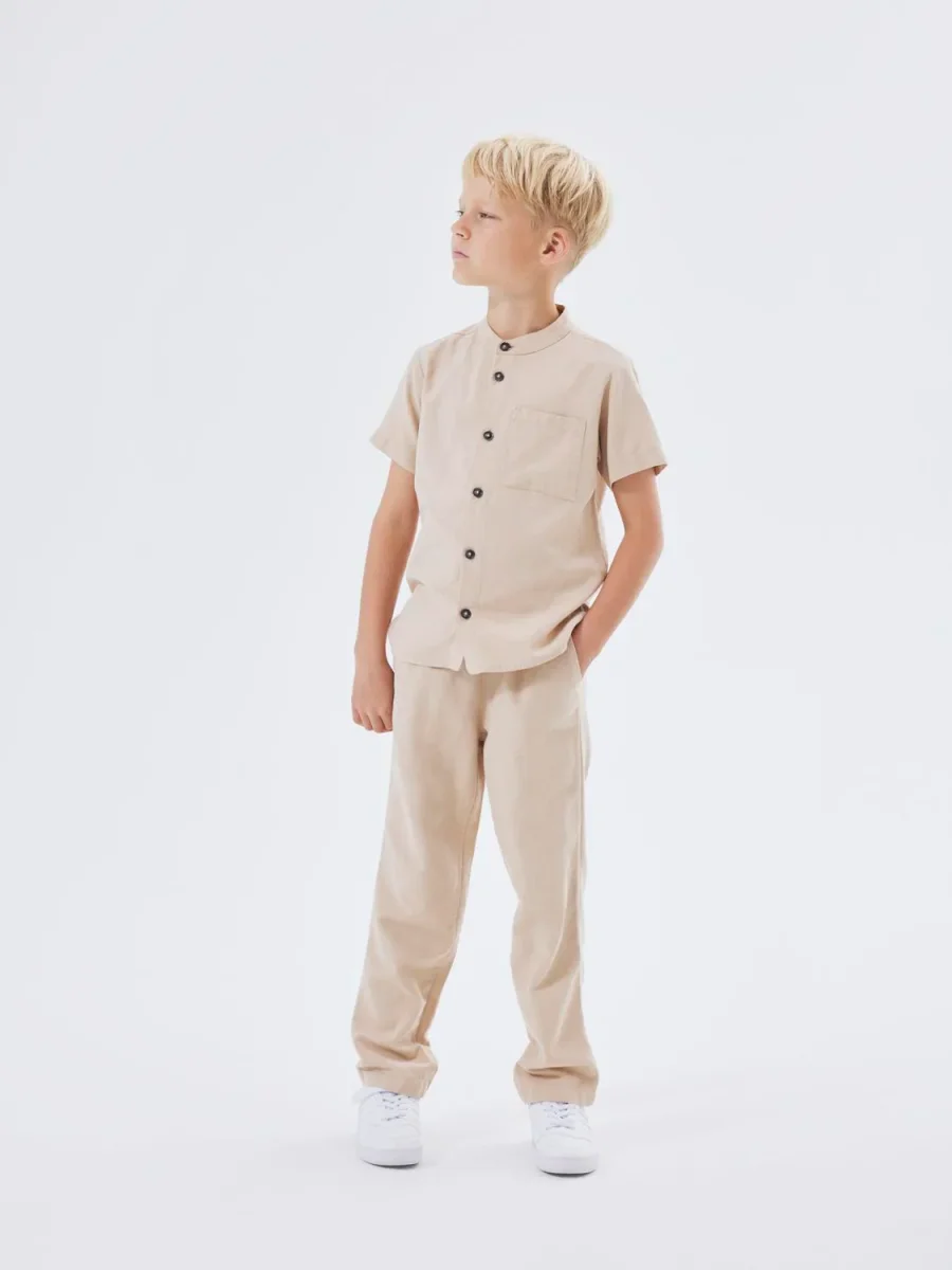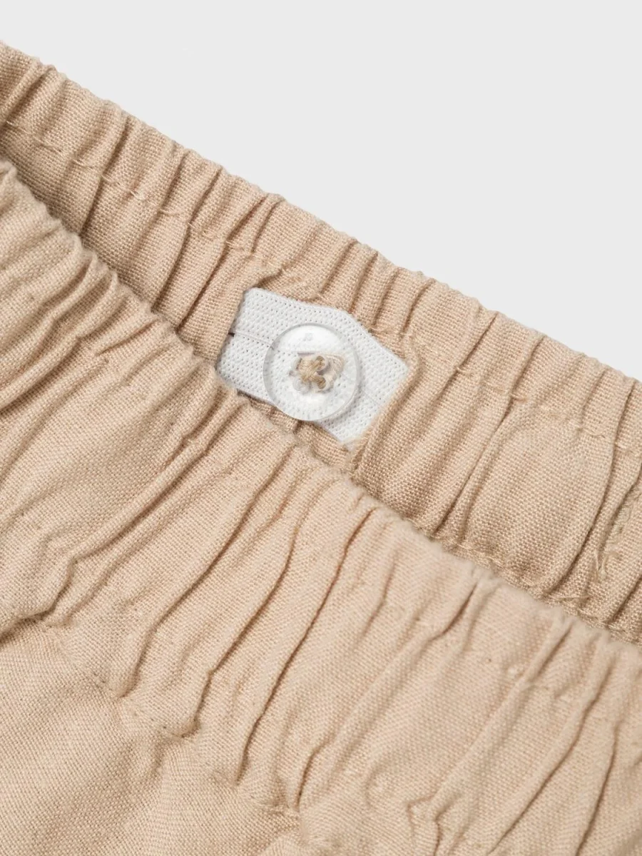 Snygga linnebyxor i klassisk modell, perfekt för sommarens härliga dagar. Ta in ljus och färg i ditt barns garderob med fantastiska vår- och sommarstilar som garanterar rörelsefrihet och en stilren look. Vävt tyg har ett distinkt korsmönster och en lätt strukturerad yta för en ren och klassisk look.