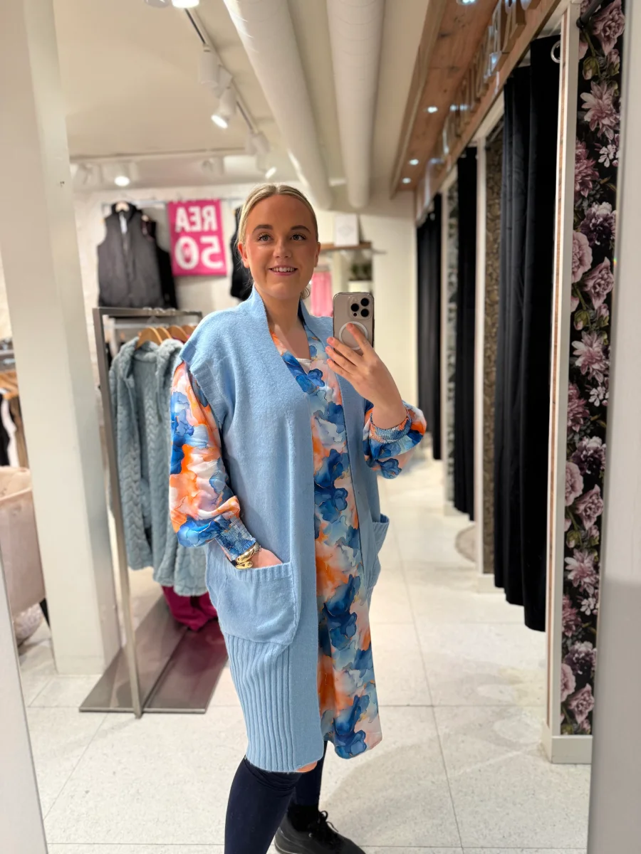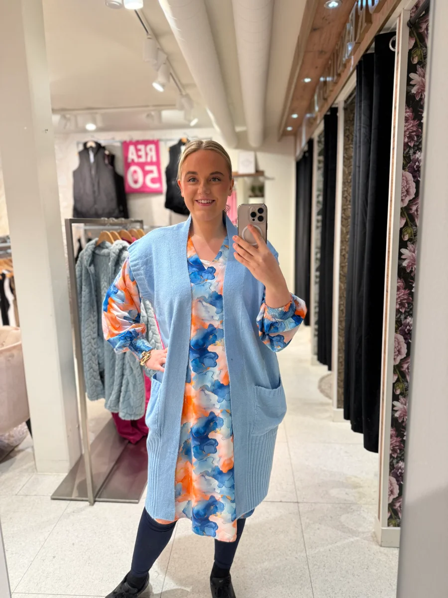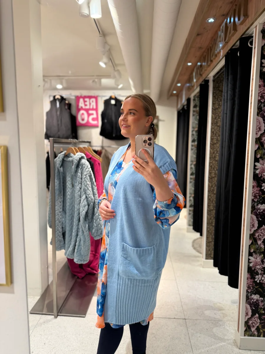 Mysig ljusblå väst som passar perfekt att bära utan på skjortor eller klänningar.