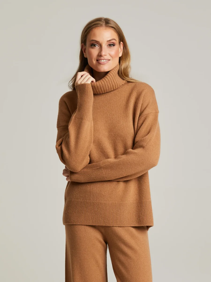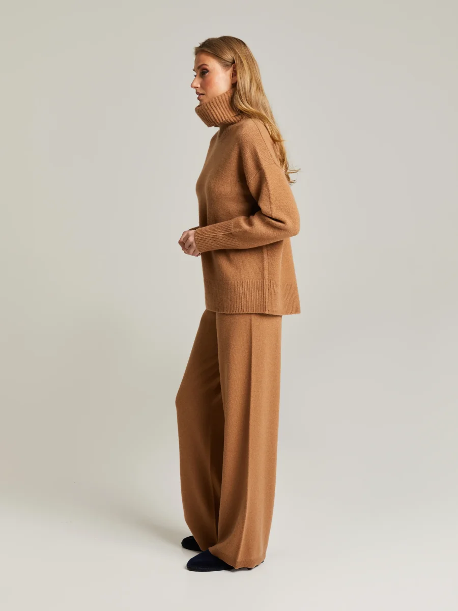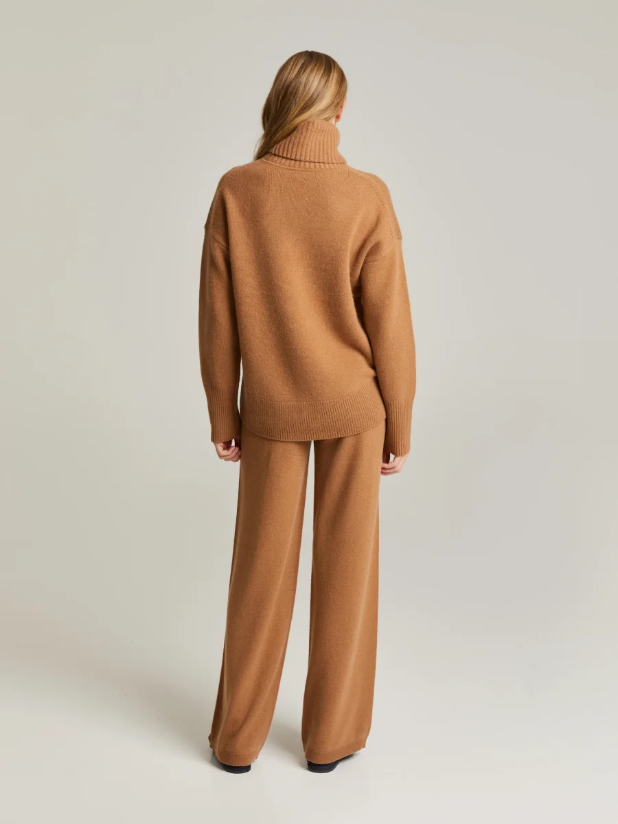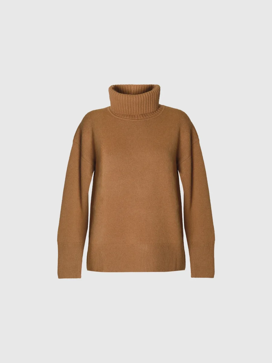 Stickad polotröja i mjuk ull-kaschmirblandning. Avslappnad passform, något sänkta axlar, långa ärmar och ribbstickning vid ärmslut och fåll. Kombinera med Naeme ribbstickade byxor för en snygg och bekväm vardagslook.