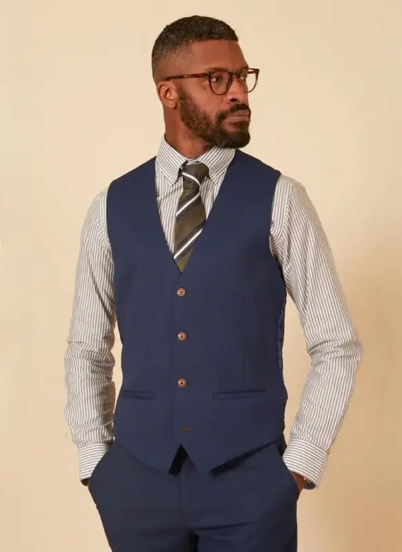 Slim Fit-passformen på Marc Darcy Gilet Max Kungligt Blå smiter åt perfekt mot din kropp och ger en slank och modern siluett. Detta gilet framhäver dina former utan att sitta för tajt och ger dig en raffinerad och självsäker stil. Perfekt för både formella och semi-formella tillfällen, från affärsmöten till eleganta middagar.