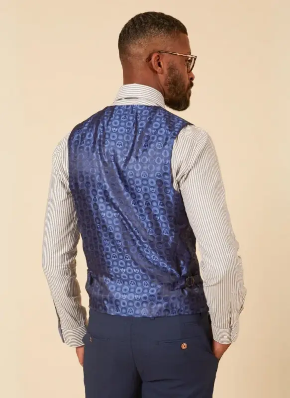Marc Darcy Gilet Max Kungligt Blå är ett måste för varje stilmedveten man. Med sina högkvalitativa material, den perfekta passformen och de eleganta detaljerna tillför detta gilet en känsla av klass till varje outfit. Oavsett om du strävar efter en formell eller avslappnad look, anpassar sig detta gilet enkelt till din stil. Komplettera din garderob och investera i detta tidlösa och mångsidiga plagg från Marc Darcy.