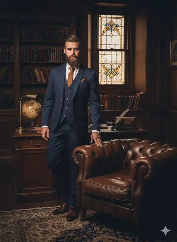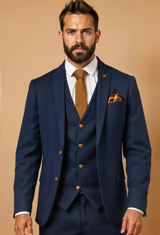 Vill du se riktigt skarp och elegant ut i en marinblå kostym för ditt affärsmöte? Då är den här kostymen eller någon av våra andra tredelade kostymer precis det som kan göra skillnaden.
