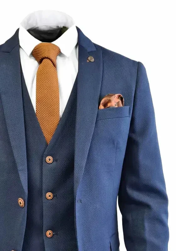 Är du också ett fan av marinblå kostymer? Du är inte ensam. De marinblå kostymerna är mycket populära och säljs i stort antal. Den tredelade kostymen från Marc Darcy ser också bra ut och bärs ofta för både affärs- och formella tillfällen. Med sitt eleganta utseende och vackra detaljer kommer denna kostym för män alltid att få dig att se bra ut.