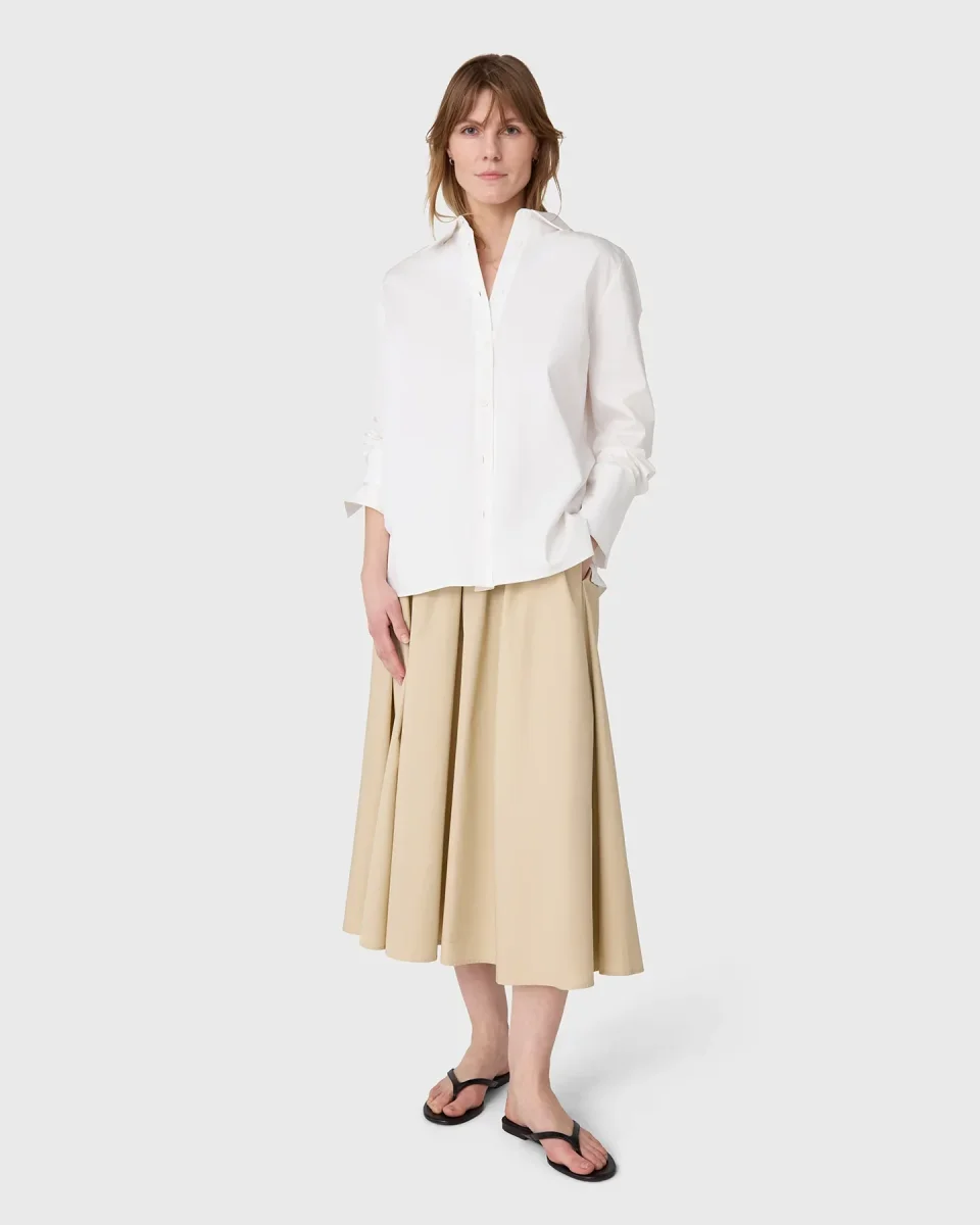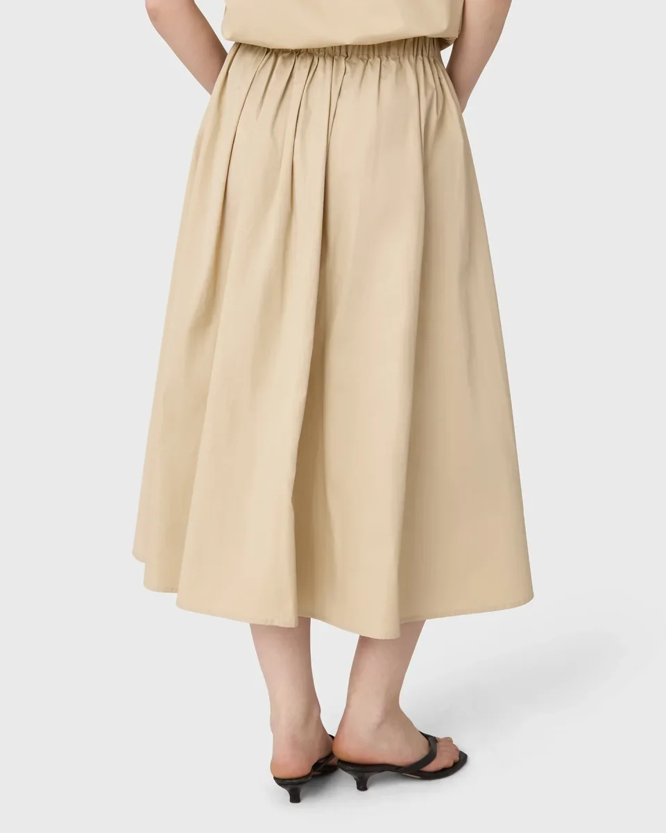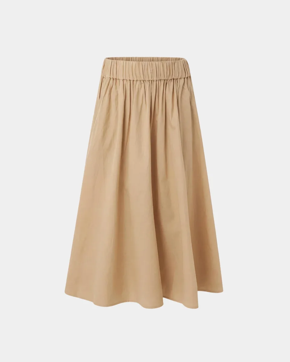 Sommarens favoritkjol med bred passform och smickrande hög elastisk midjeband. Midi längd Elastisk midjeband Sidofickor 100% cotton Model is 174 cm and wears size 36.