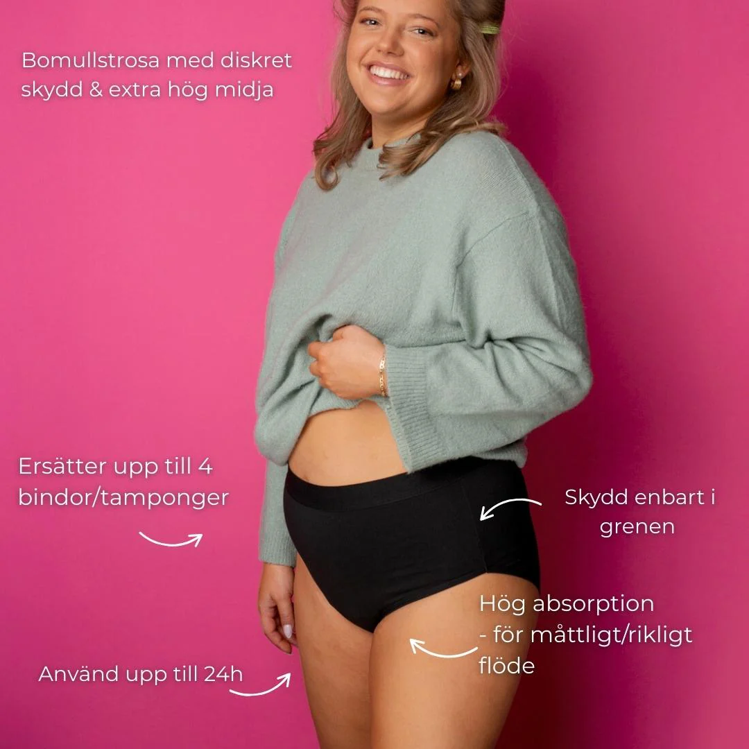💦 För alla droppar – Trosorna kan helt ersätta andra skydd vid mens, flytningar och svett eller användas som komplement till menskopp/tampong.