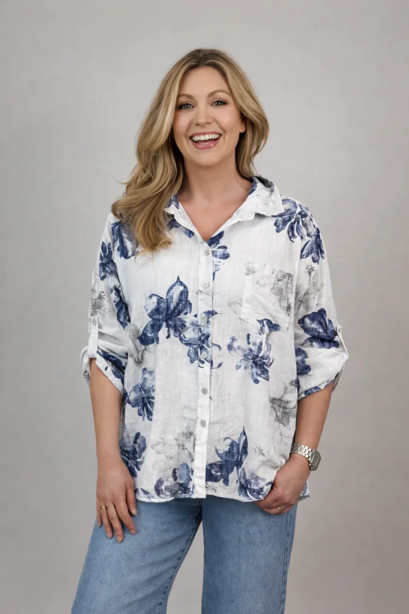 Mönstrad blus Kelly med krage och knappar hela vägen från Mixbyheart