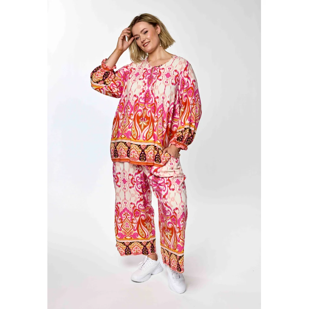 Läcker mönstrad byxa med 7/8 dels benlängd, det är resår i midjan med fickor på sidorna. Denna byxa kan du matcha till alla möjliga färger och både bära till vardags och fest. Normal i storleken.Material: 100% viskos.