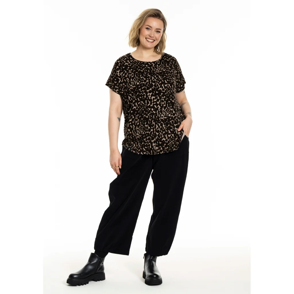 Härlig jersey-t-shirt med leopardtryck i svarta och bruna nyanser.
