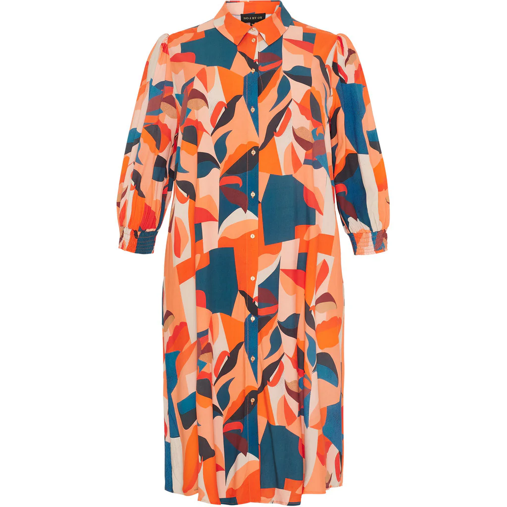 En färgstark och trendig långskjorta/klänning i ett modernt grafiskt mönster som verkligen drar blickarna till sig.