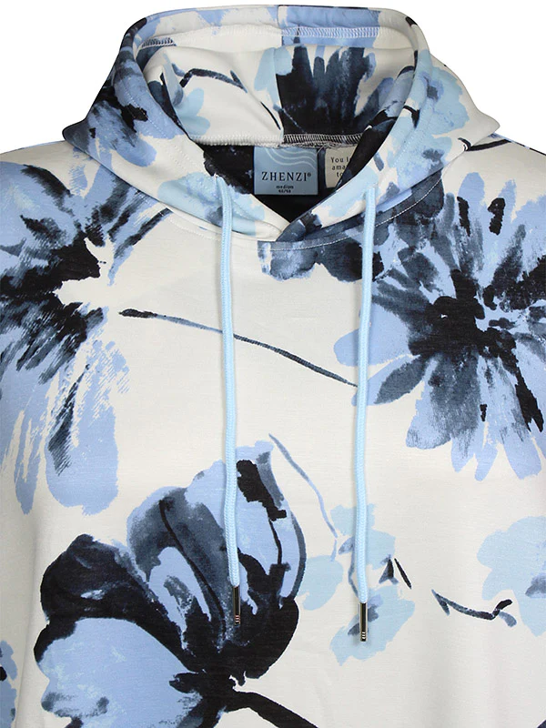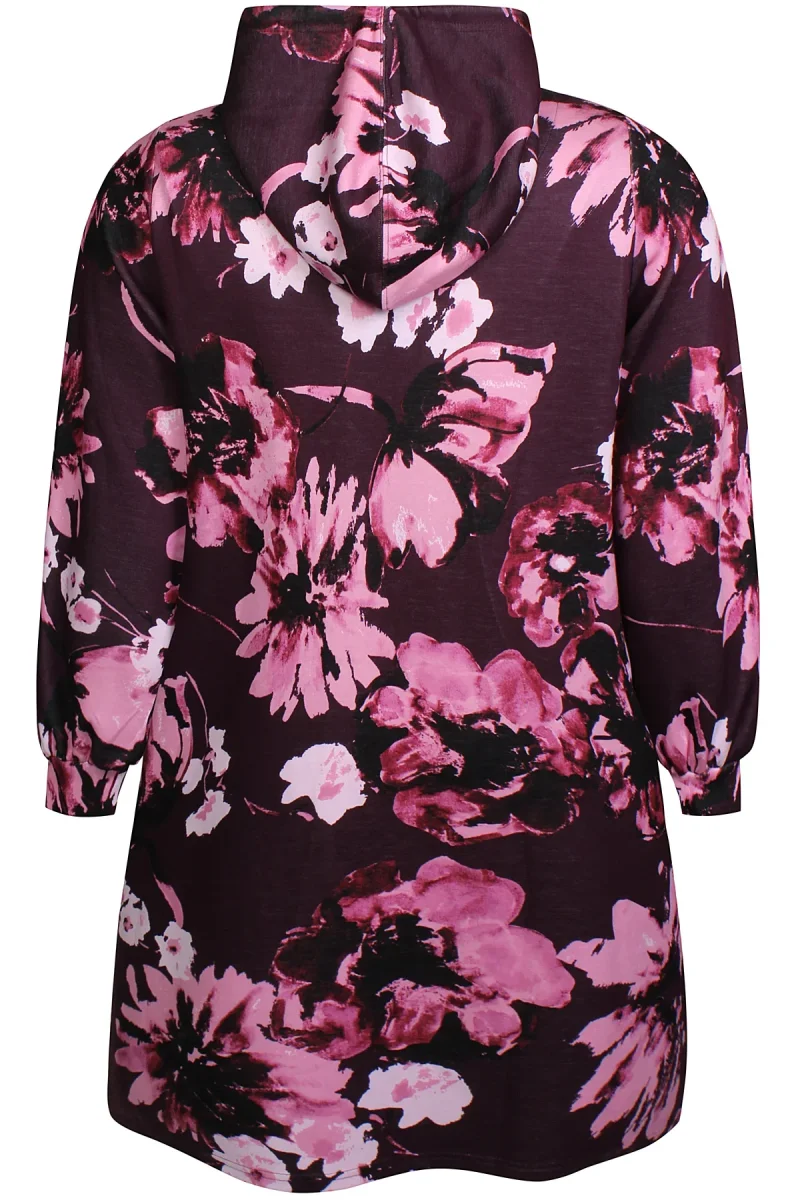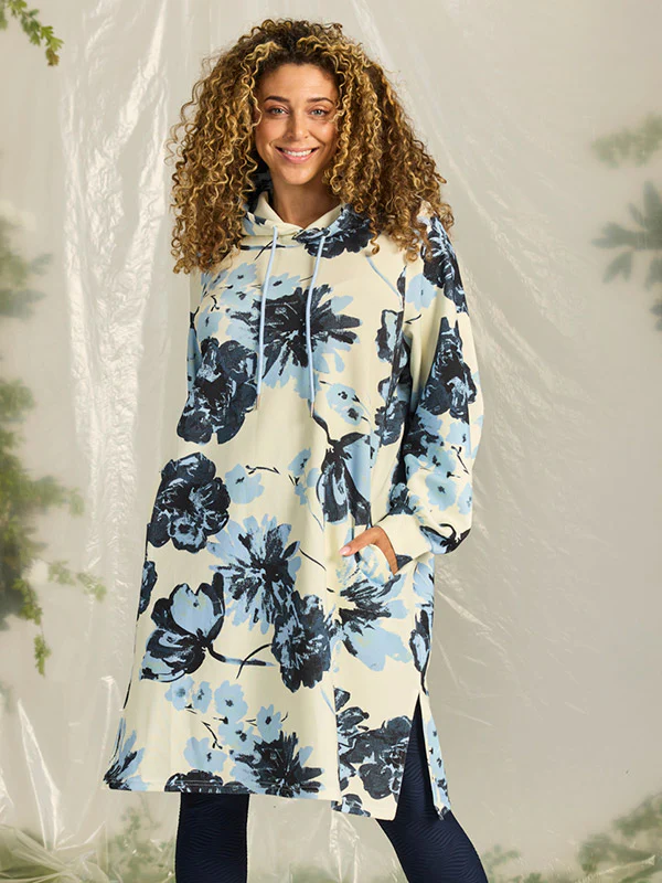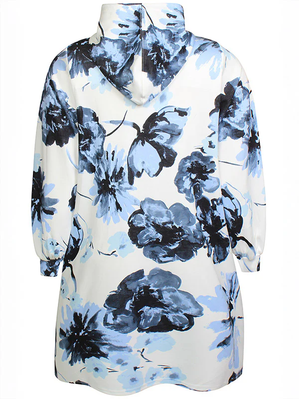 Mysig klänning i en härlig kvalitet med ett blommigt print, den har en luva och långa ärmar. Denna är perfekt att bära till leggings. Fickor på sidorna.Normal i storleken.Material: 48% polyester, 48% viskos % 7% elastan.