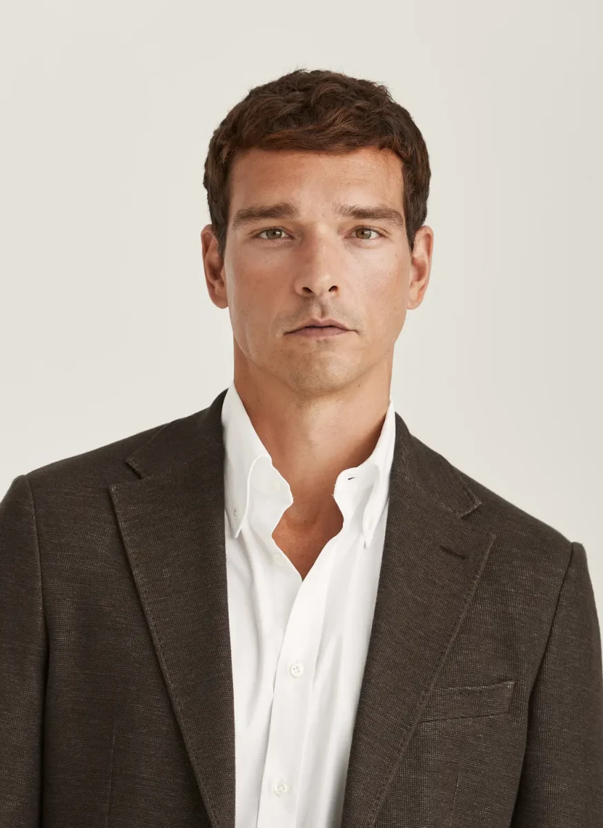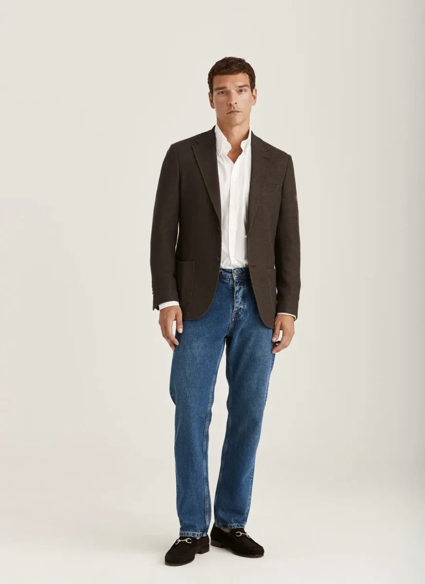 Jersey Linen Jacket är skapad i en sofistikerad mix av jersey och linne som kombinerar komfort och stil på bästa sätt. Med sin mjuka struktur och naturliga andningsförmåga erbjuder den en avslappnad känsla utan att kompromissa på elegansen. Det melerade tyget ger en modern och texturerad look som passar perfekt för vår- och sommarsäsongen. Kombinera den med en ljus skjorta och chinos för en stilig outfit.