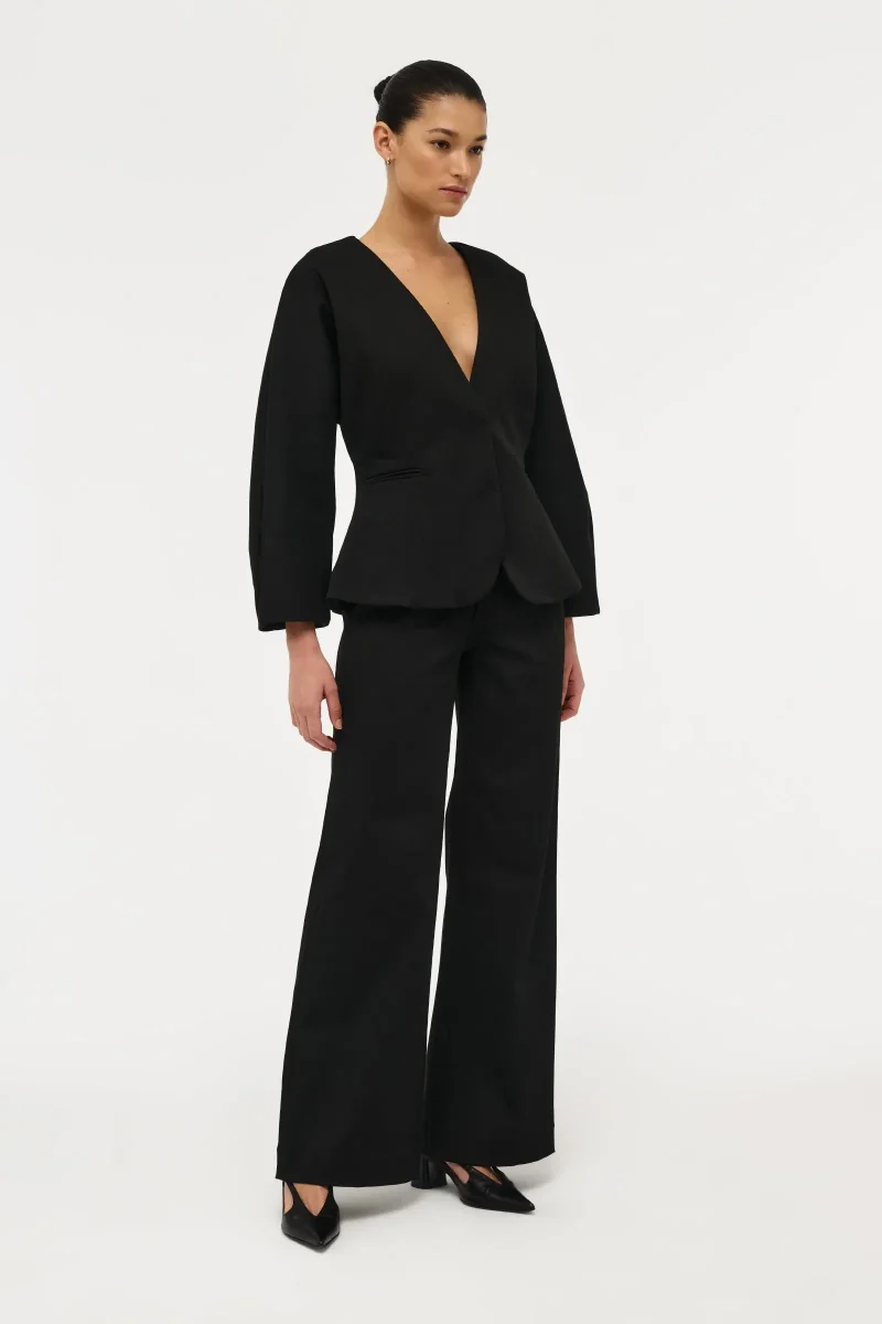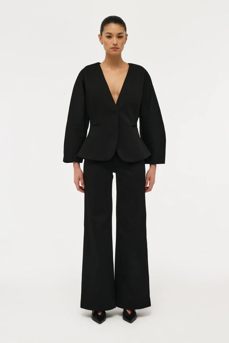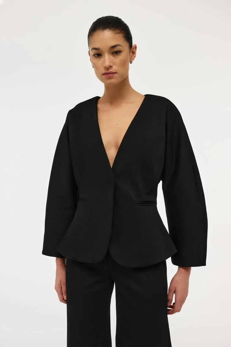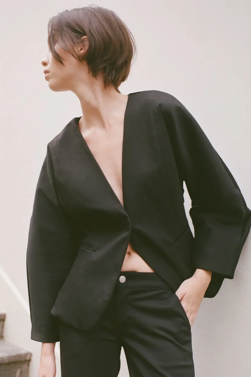 Sculpted fully lined blazer crafted in polished scuba style denim for a sharp tailored look Each pattern piece has been expertly cut and tailored to enhance the cinched waist and batwing cut A concealed button maintains the clean polished look 55 Modal 43% Polyester, 2% Elastane