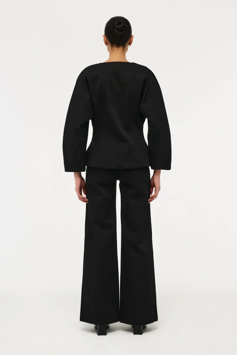 Each pattern piece has been expertly cut and tailored to enhance the cinched waist and batwing cut