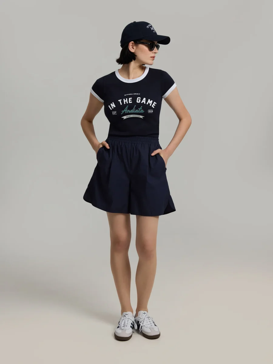 Shorts in a relaxed fit with an elasticated waistband and side and back pockets. Made from Italian cotton.