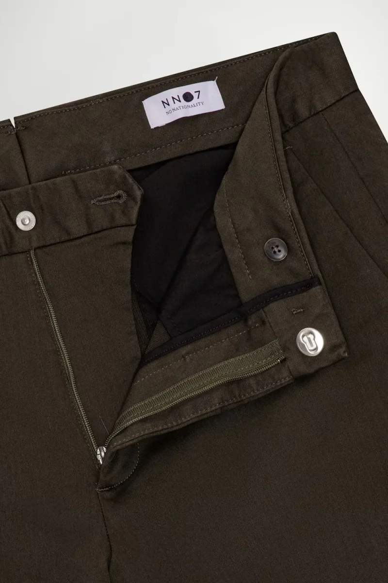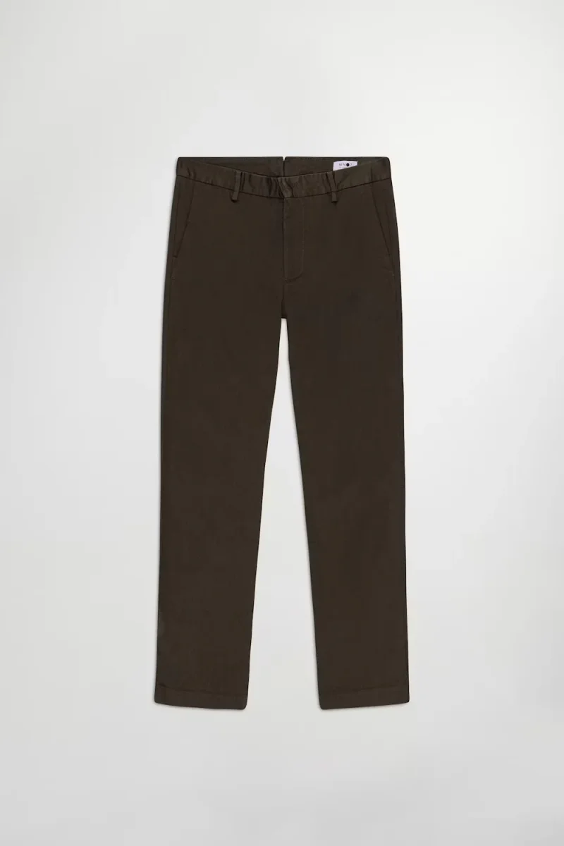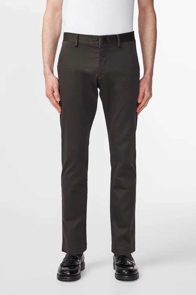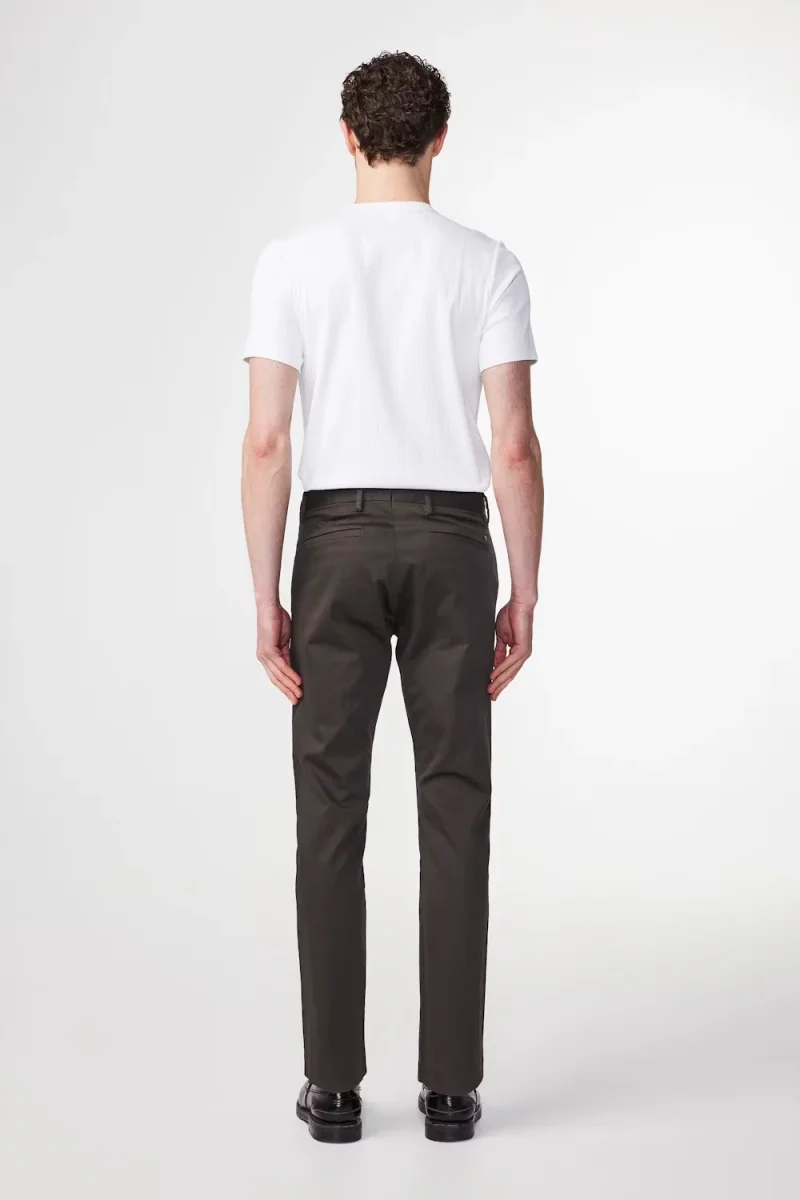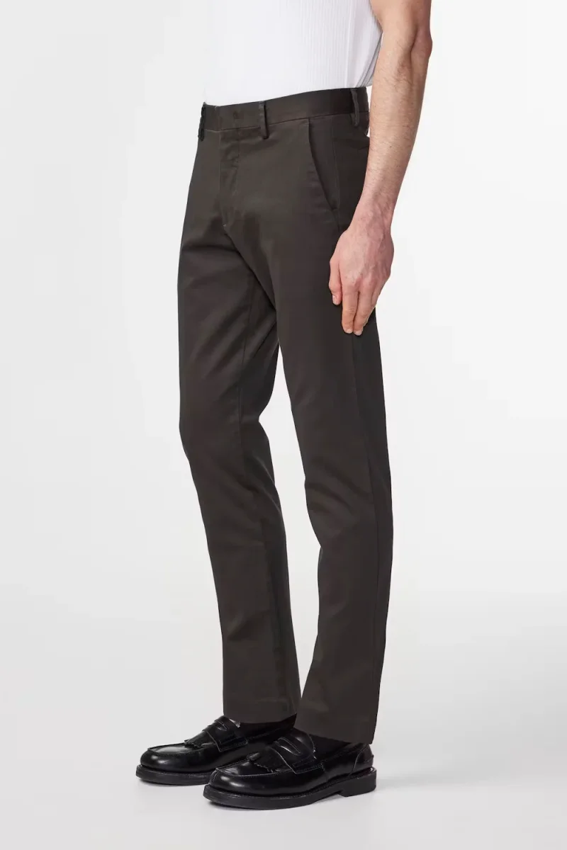 Slim tailored chino med avsmalnande ben tillverkad i en 260 g/m2 mjuk organisk bomullsblandning komplett med ett snyggt veck och blindfåll. Skräddarsydda detaljer med Cobrax-hake och öglestängning och passpoalfickor med lock.