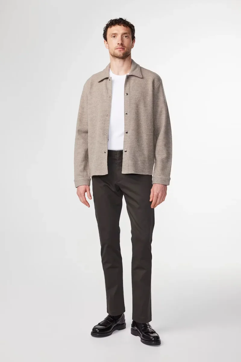 Slim tailored chino med avsmalnande ben tillverkad i en 260 g/m2 mjuk organisk bomullsblandning komplett med ett snyggt veck och blindfåll. Skräddarsydda detaljer med Cobrax-hake och öglestängning och passpoalfickor med lock. Slim fit Medelhög midja Avsmalnande ben Cobrax-hake och öglestängning Italienskt Progetto Uno-tyg Certifierad ekologisk bomull Stylenummer 2111420165 Tillverkad i Turkiet Jacob är 188 cm […]