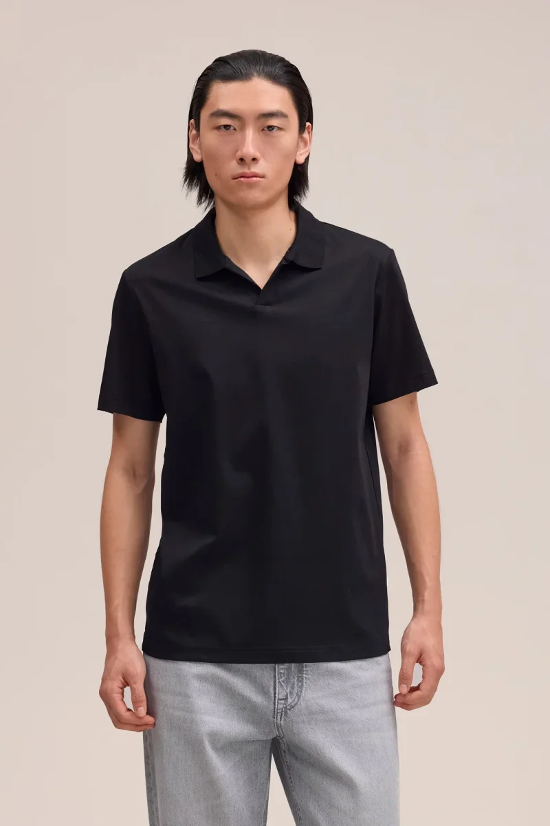 Polotröja med öppen krage tillverkad av ekologisk bomullsjersey med dubbla nålsömmar.