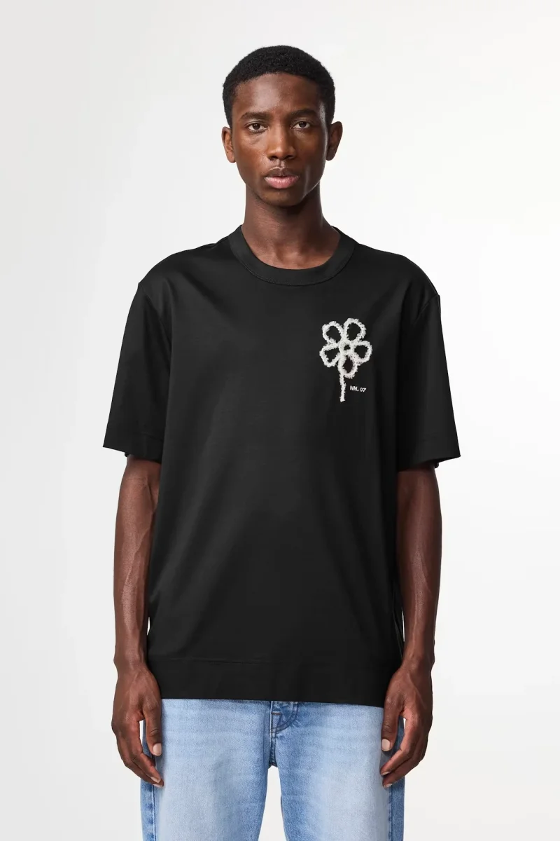 T-shirt med relaxed fit tillverkad i en merceriserad ekologisk bomullsjersey med bred nederkant och broderi på bröstet.