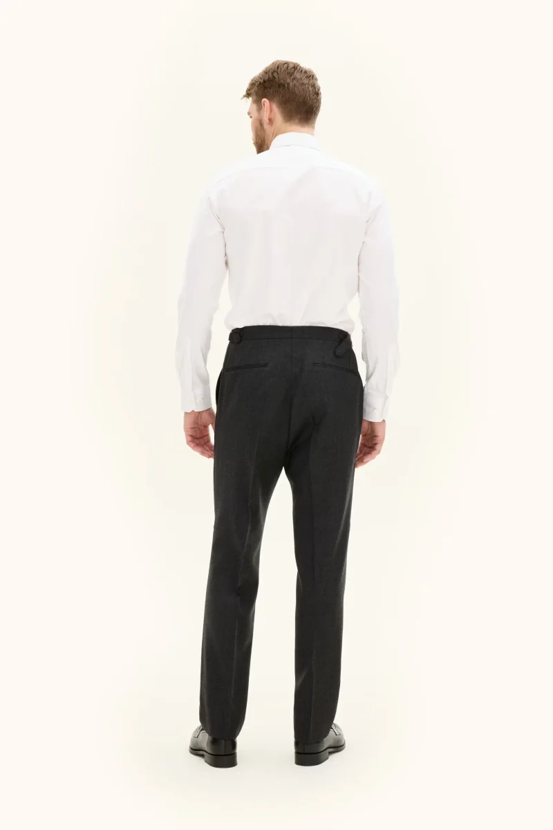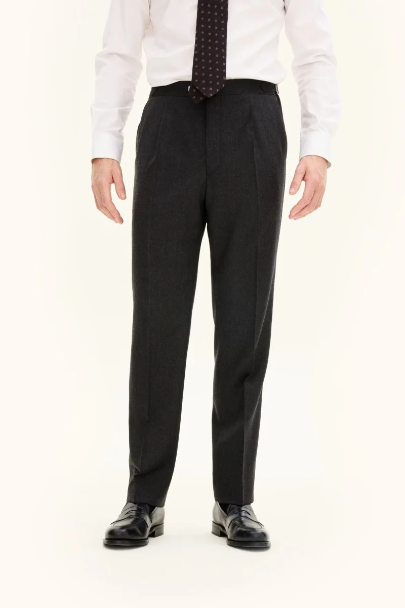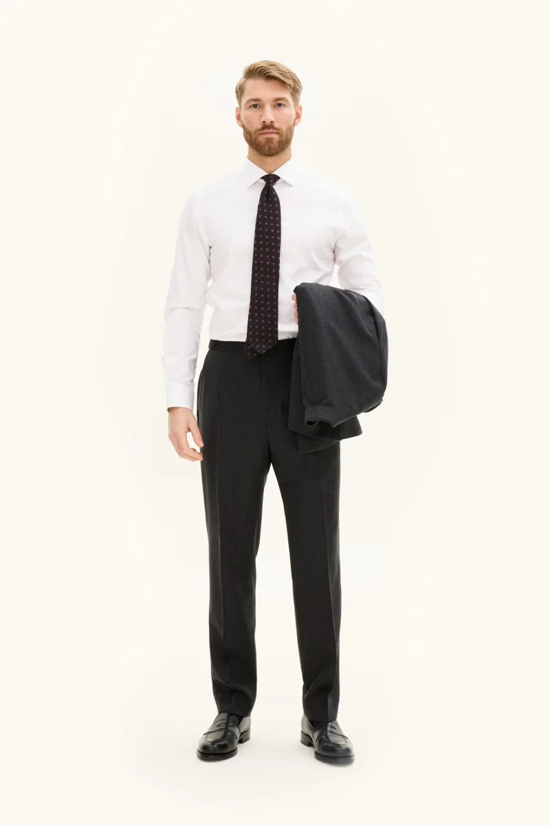 Byxa tillverkad i en exklusiv ullblandning, med en genomarbetad passform i regular fit och hög midja. Ett noggrant utformat plagg som balanserar klassisk skräddarkonst med modern silhuett. Perfekt för såväl professionella sammanhang som lediga tillfällen där stilkänsla prioriteras.
