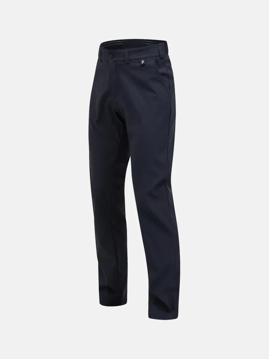 Klassiska, smala golfbyxor som delvis tillverkas av återvunna fibrer och har snabbtorkande och vattenavvisande egenskaper. Extra stretch för maximal komfort och rörlighet. Ett anti-sliptryck på midjebandets insida håller din instoppade golftröja ordentligt på plats.