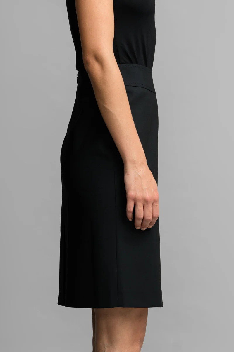 Klassisk, skräddarsydd pennkjol i högkvalitativ ull blandad med elastan. Knälång, slits och dragkedja baktill. Kjolen är fodrad. Bär med kavaj och sidenblus för en tidlös look.