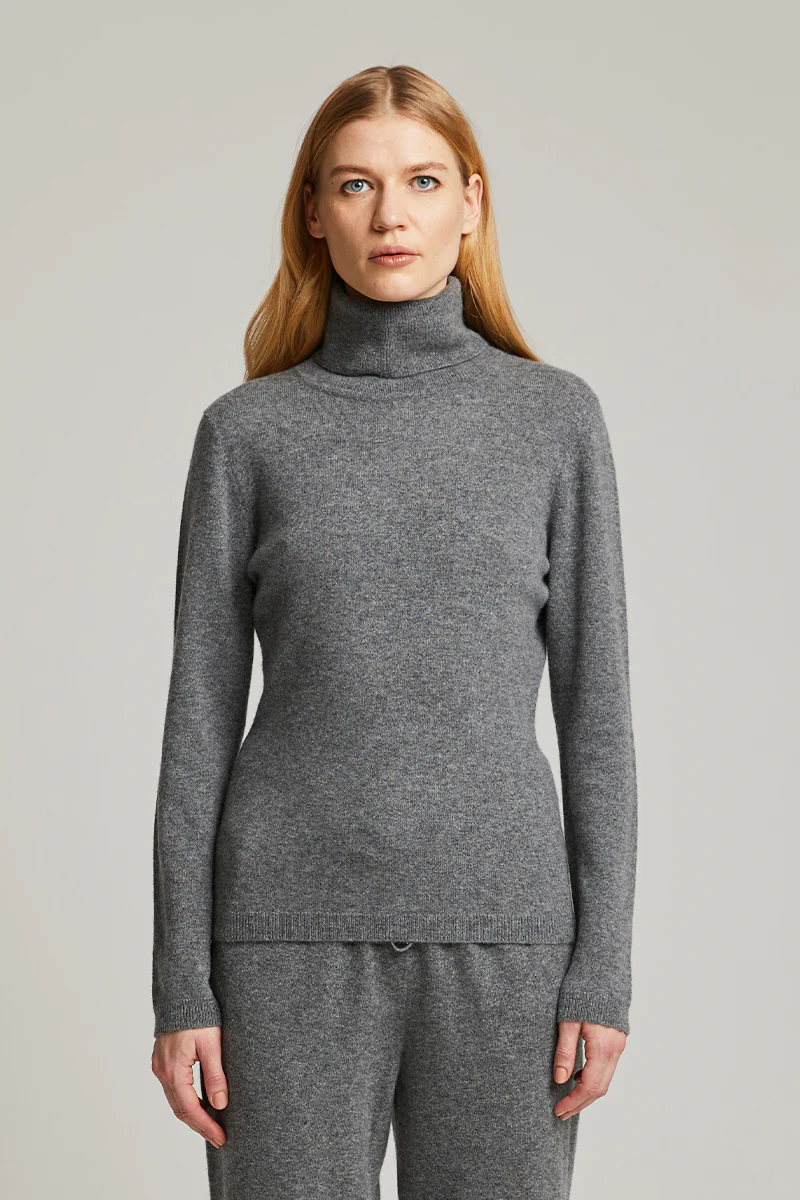 En klassisk stickad polotröja gjord av 100% mjuk och lyxig kashmir. Långa ärmar, hög polokrage och figursydd siluett.