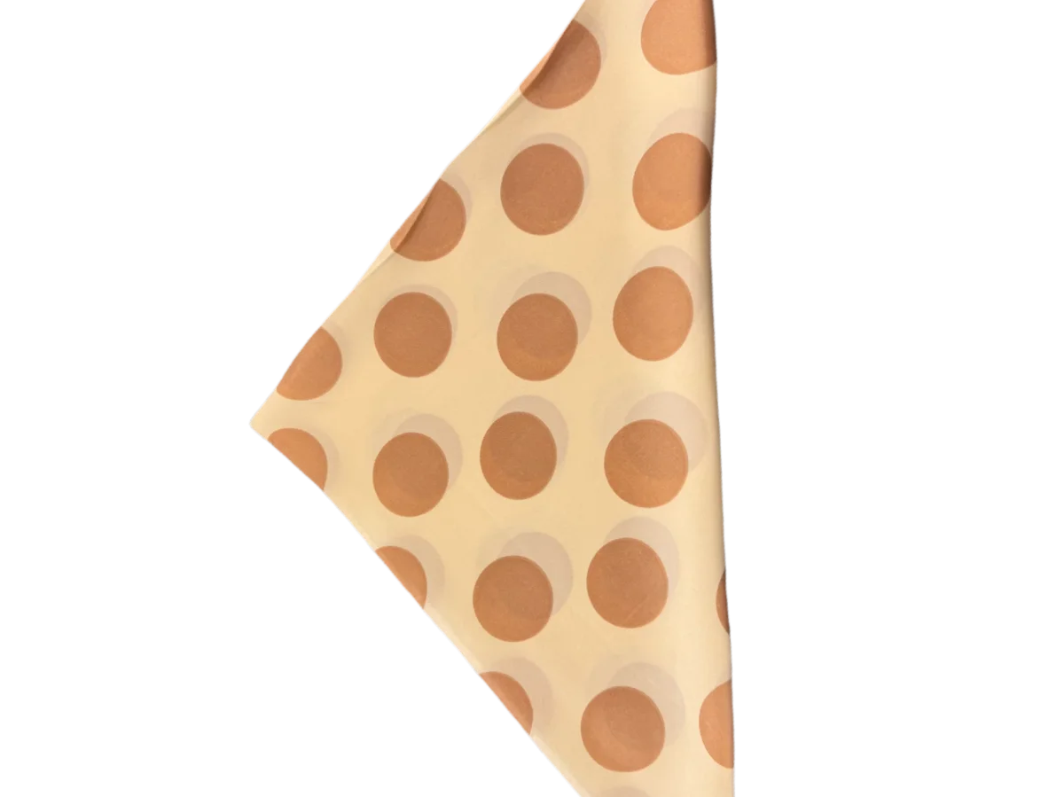 En elegant fyrkantig scarf i silkesliknande material med beige botten och bruna prickar.Perfekt att bära runt halsen, i håret eller knuten på väskan – en mångsidig accessoar som direkt lyfter din outfit med en feminin och trendig känsla.