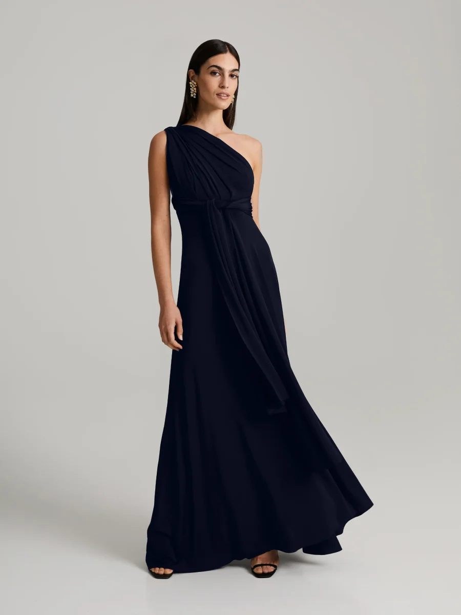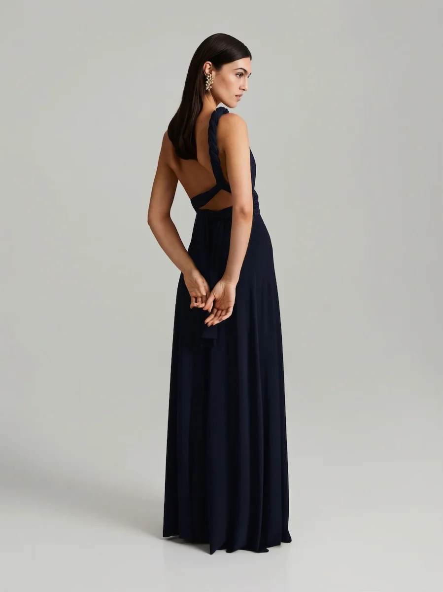 Maxiklänning i elastisk och fast stretchjersey. Långa, mångsidiga axelband ger möjlighet att skapa din egen unika look.