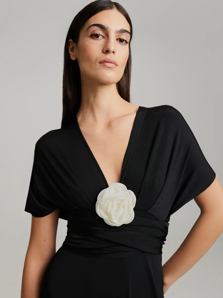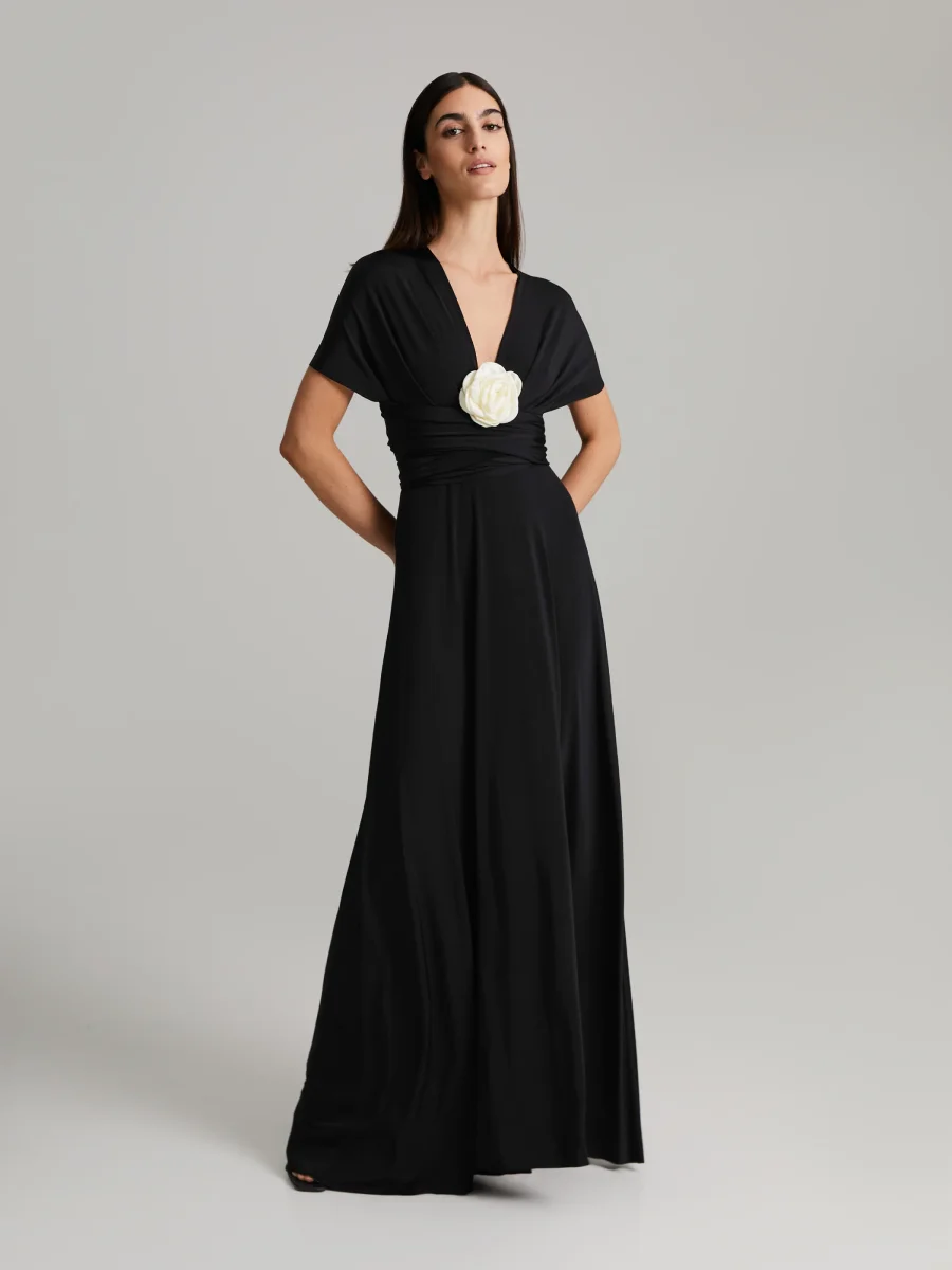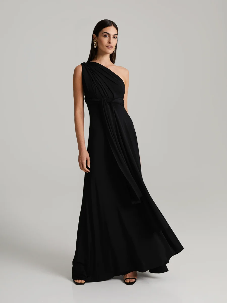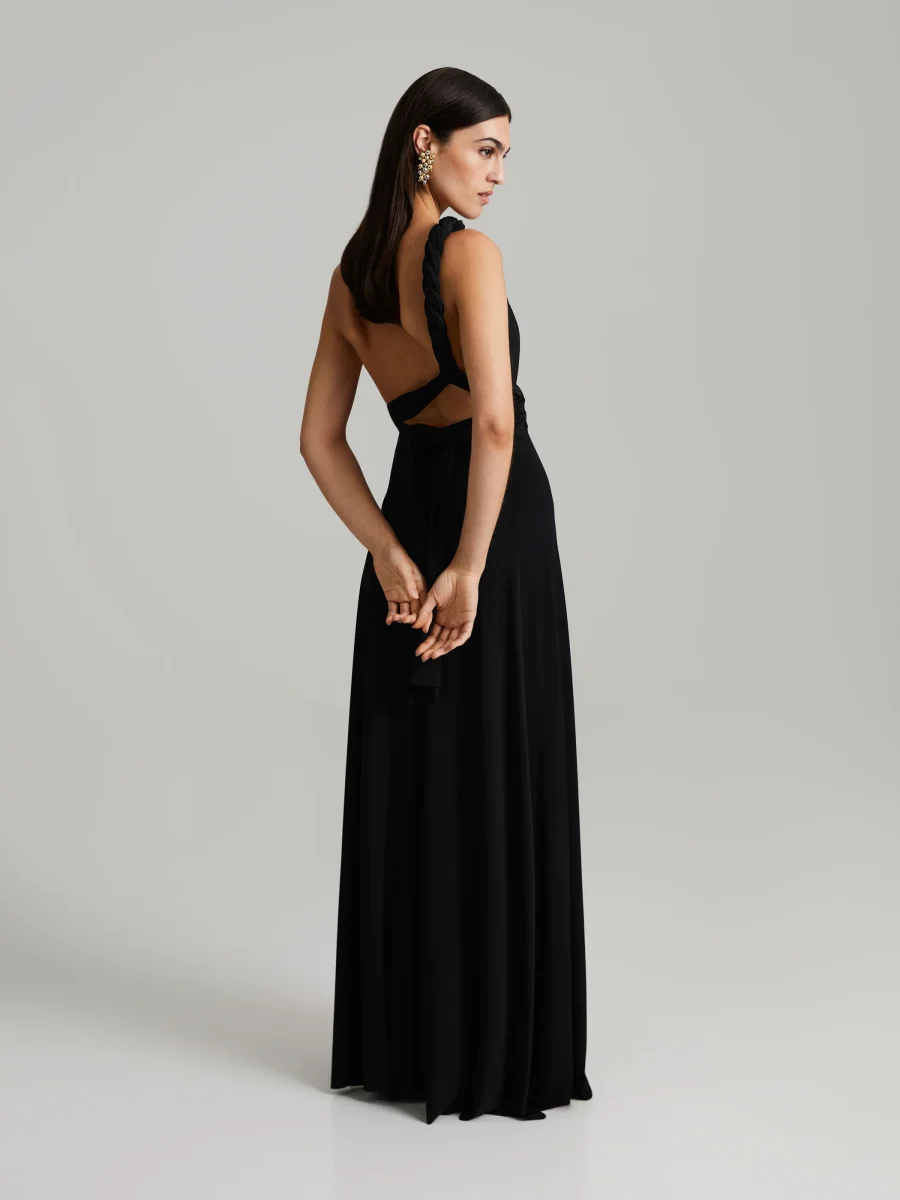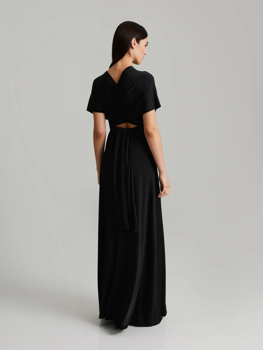 Maxiklänning i elastisk stretchjersey. Långa, mångsidiga axelband ger möjlighet att skapa din egen unika look.