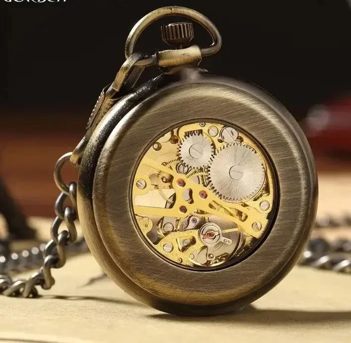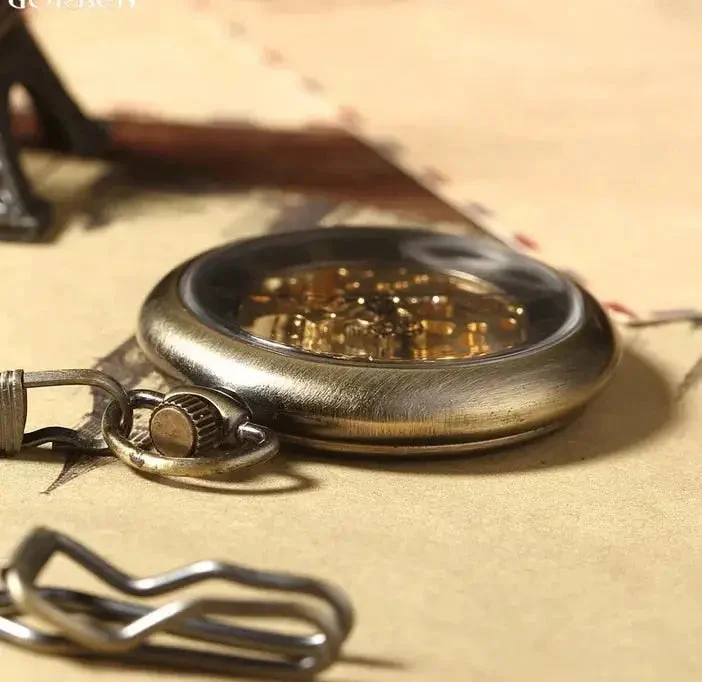 Det här vackra fickuret kommer att passa bra in i din klocksamling. Fickuret är tillverkat i brons och har en romersk urtavla. Det synliga urverket ger klockan ett fint vintageutseende.