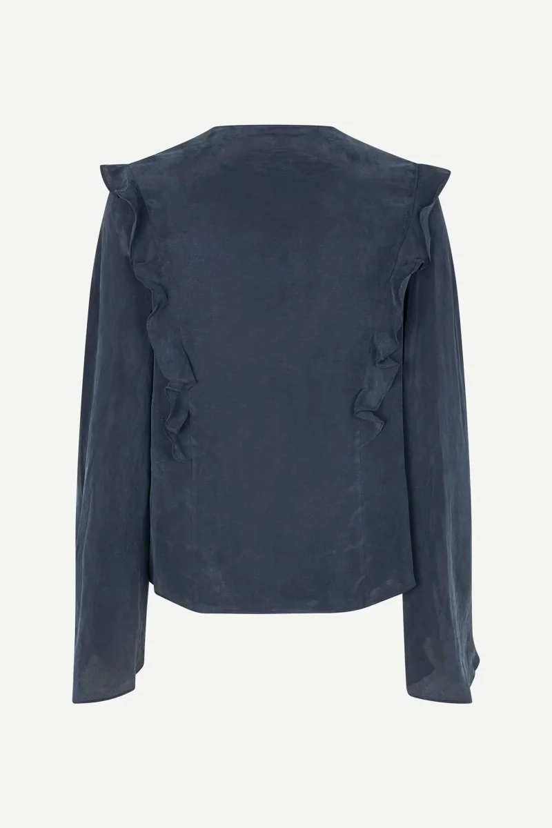 Long-sleeved blouse with a regular fit and extra long sleeves. Self-tie straps at the V-neck. Frilled detailing at the front and back. Main material made from 100% TENCEL™ Lyocell. This product contains TENCEL™ Lyocell, certified with the EU Ecolabel for textile products (licence no. AT/016/001) for environmental excellence.
