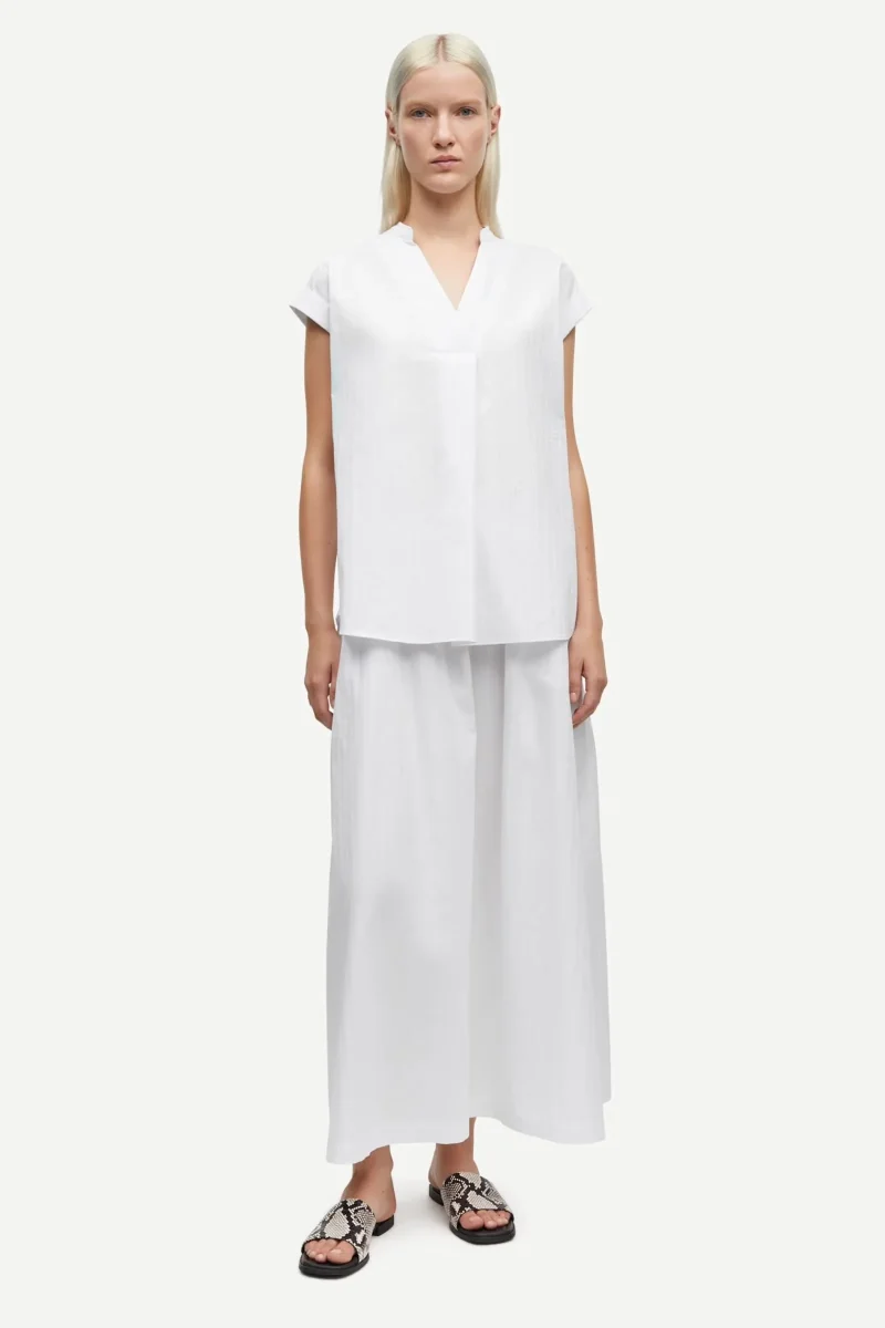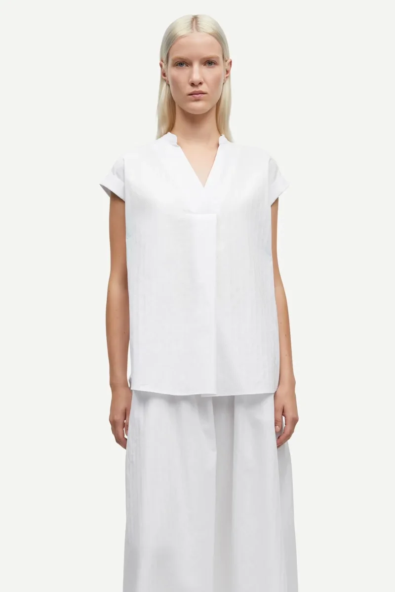 Short-sleeved top with a loose fit. Elasticated waistband. Folded detail at the V-neck. Main material made from 100% organic cotton. This product is GOTS certified. Each stage of the supply chain has met strict social, environmental, and chemical requirements.